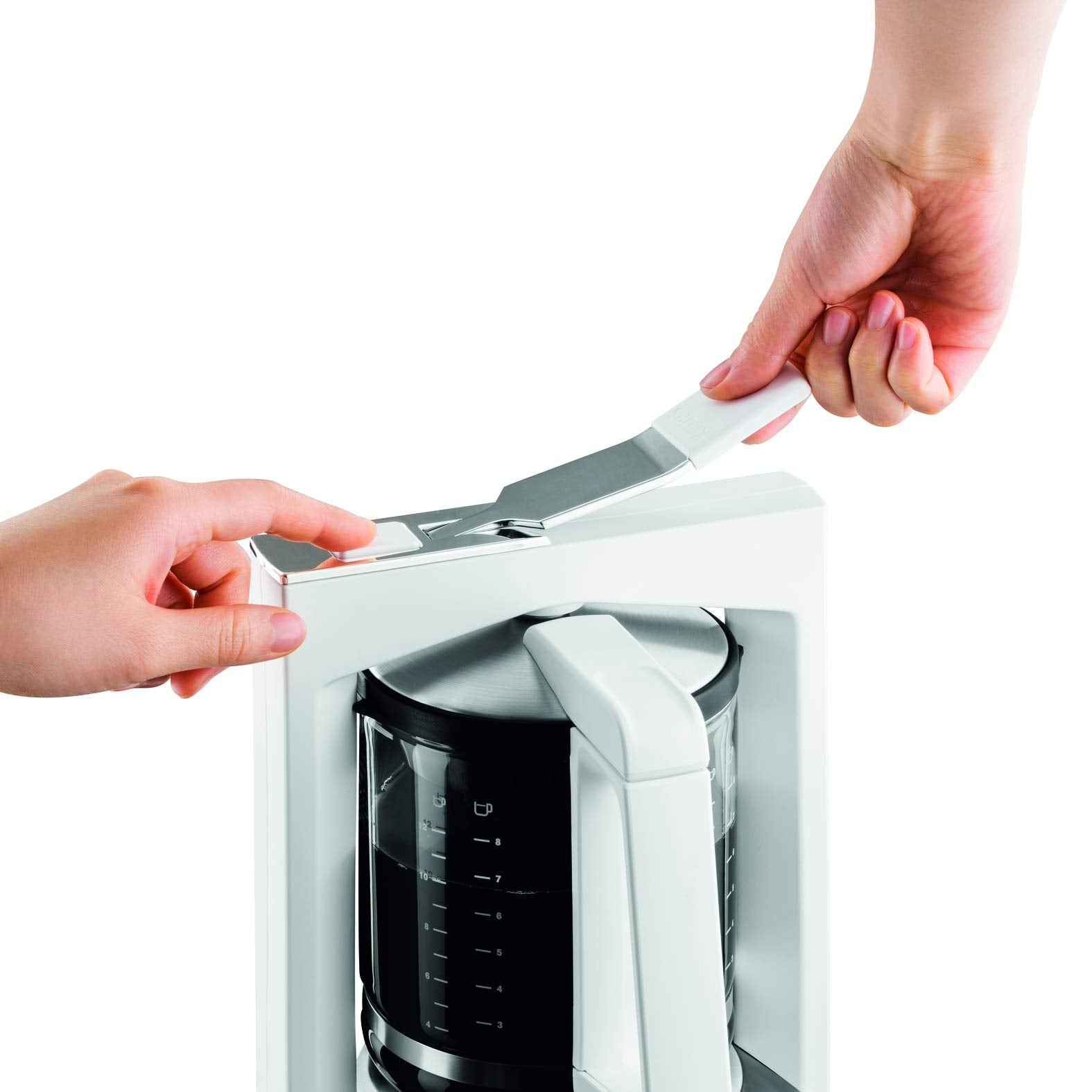 - Einfache Handhabung: Ein praktischer Entriegelungsknopf und ein Hebel an der Oberseite ermöglichen das mühelose Einsetzen und Herausnehmen der Kaffeekanne.