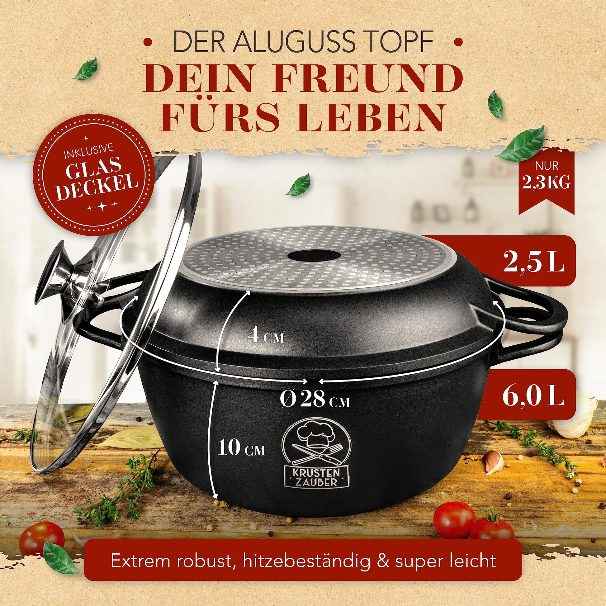KRUSTENZAUBER 28cm Aluguss Bräter - Induktion mit Glasdeckel 6L
