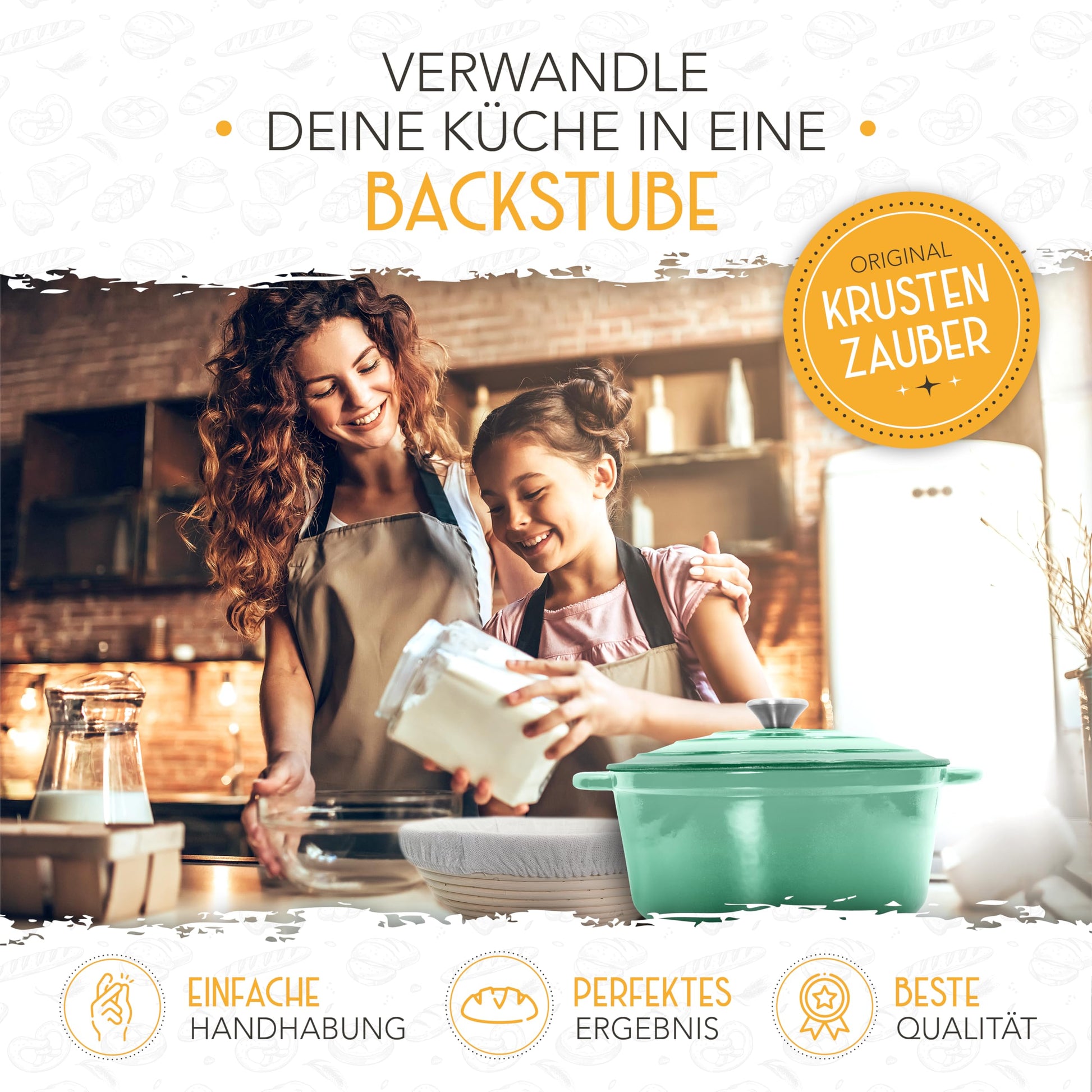 - Traditioneller Gärkorb: Verleiht dem Brotteig beim Aufgehen die klassische Form und das charakteristische Rillenmuster eines echten Handwerkerbrotes.