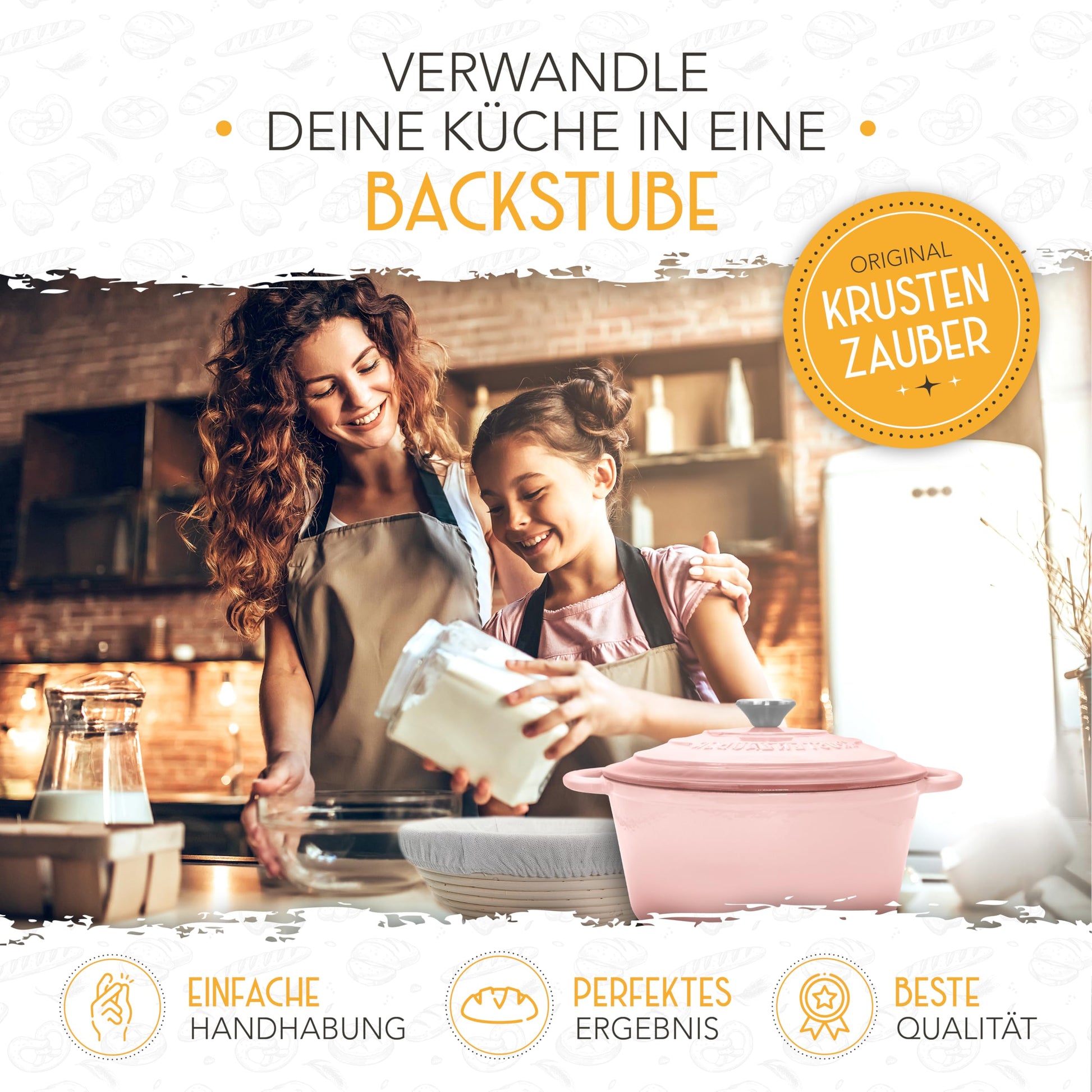 KRUSTENZAUBER Gusseisen Brotbacktopf emailliert 26cm mit Gärkorb