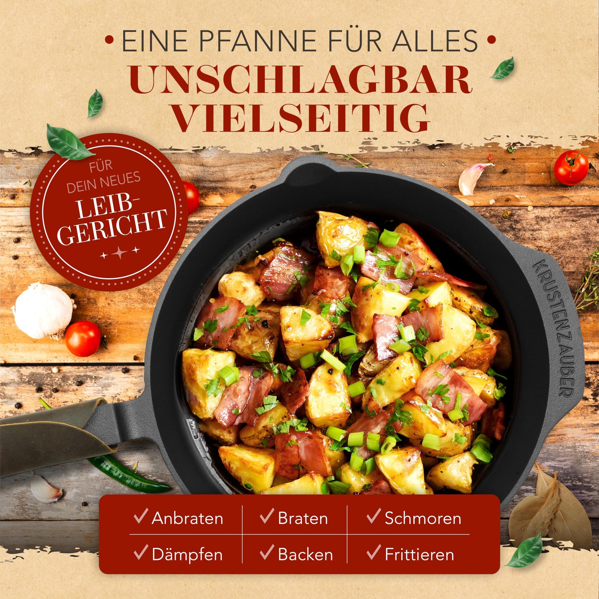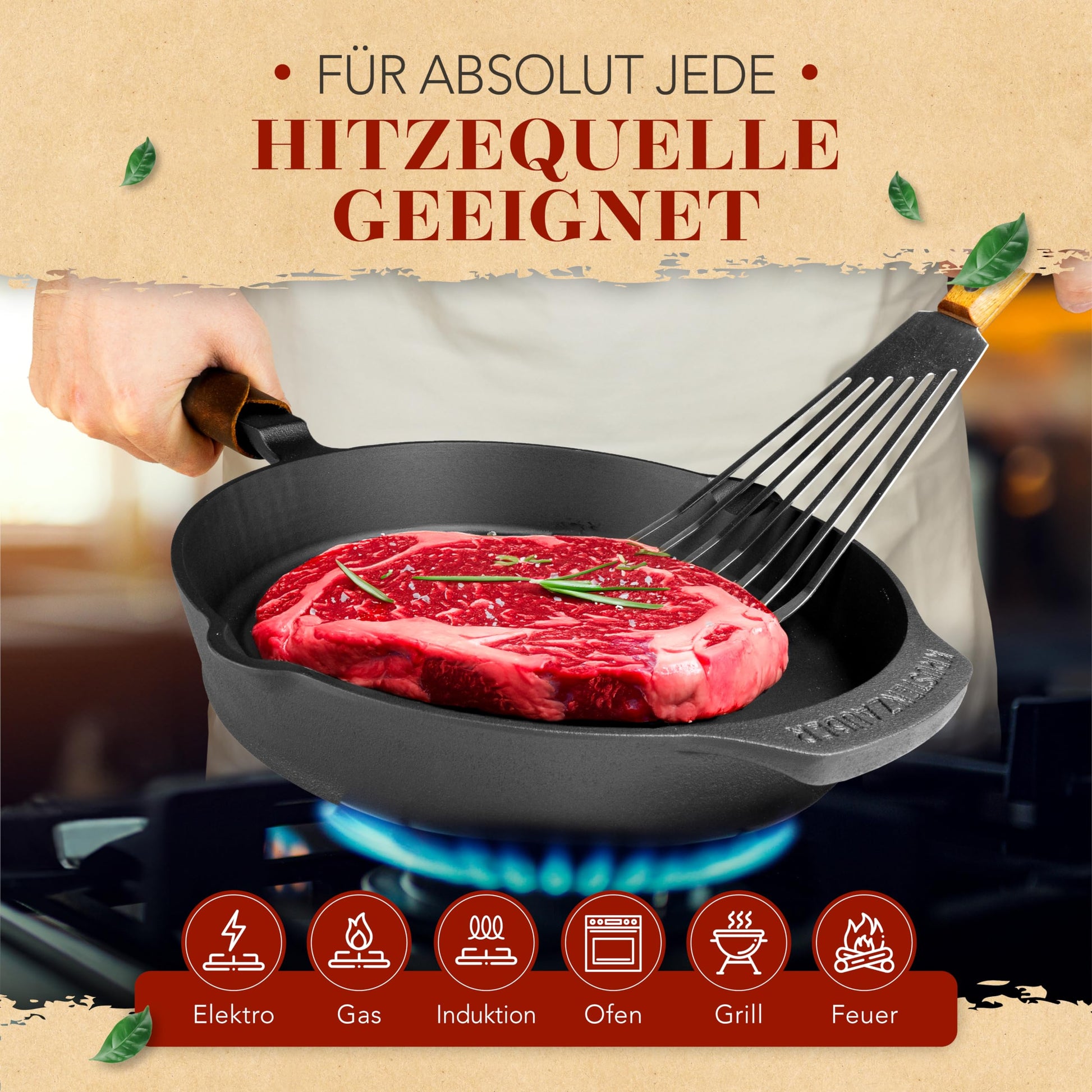 - Eignung: Perfekt für alle Herdarten (inkl. Induktion), Grill, Backofen und offenes Feuer