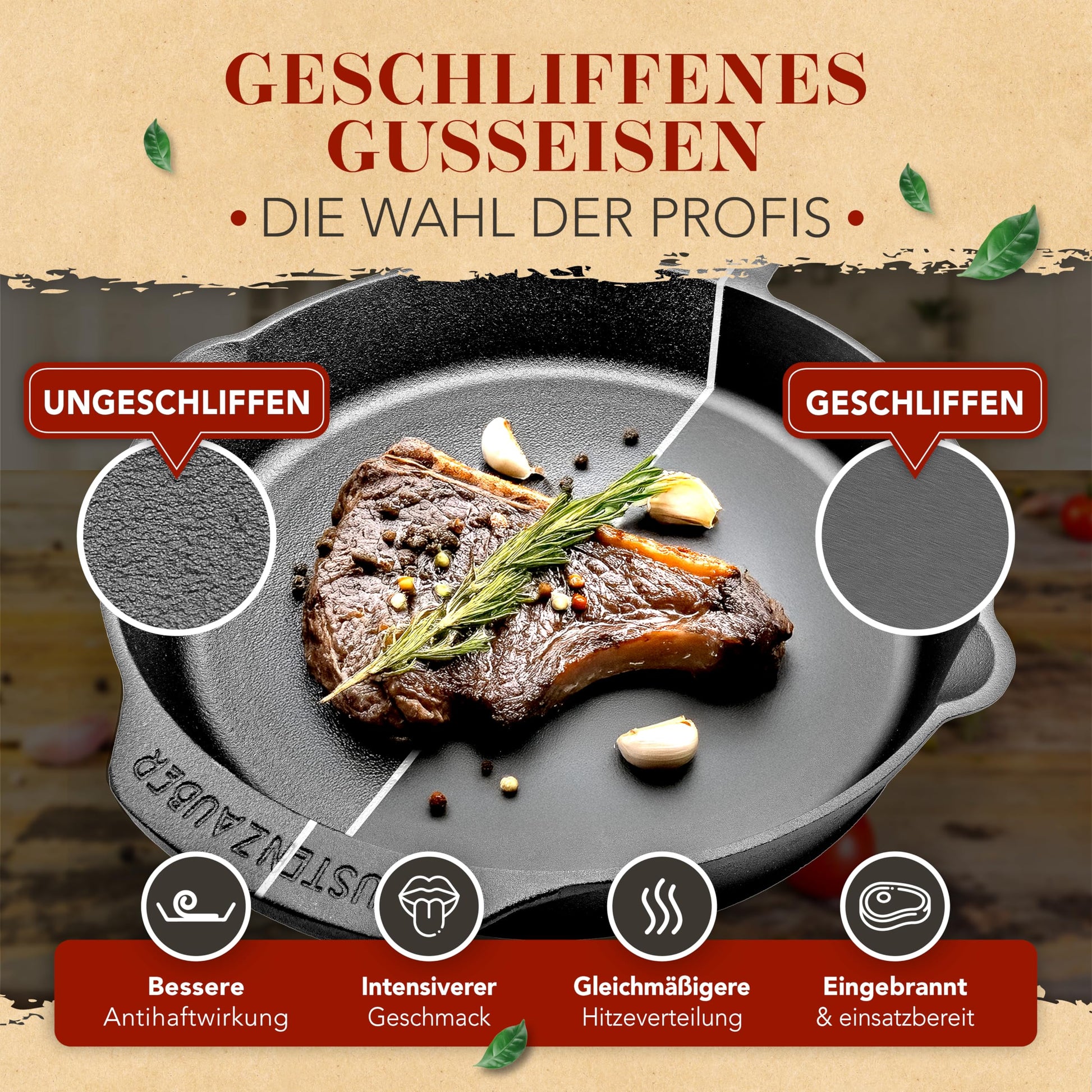 - Pfannentyp: Geschliffene Gusseisenpfanne
