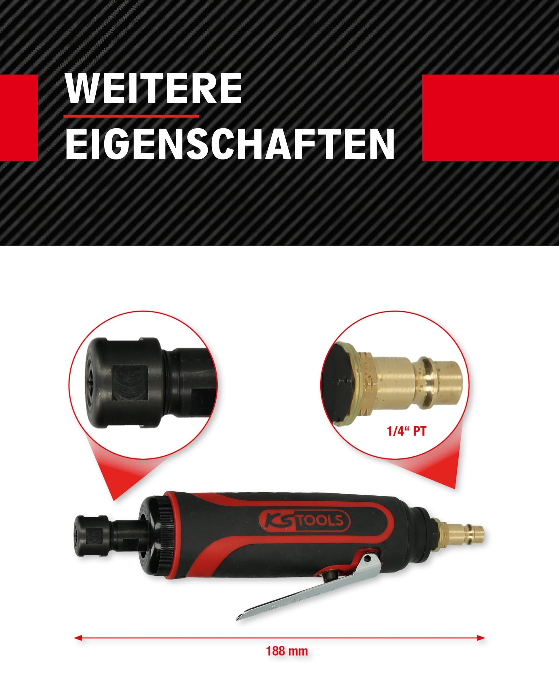 KS Tools Druckluft Stab-/Geradschleifer 515.5410 6mm Spannzange