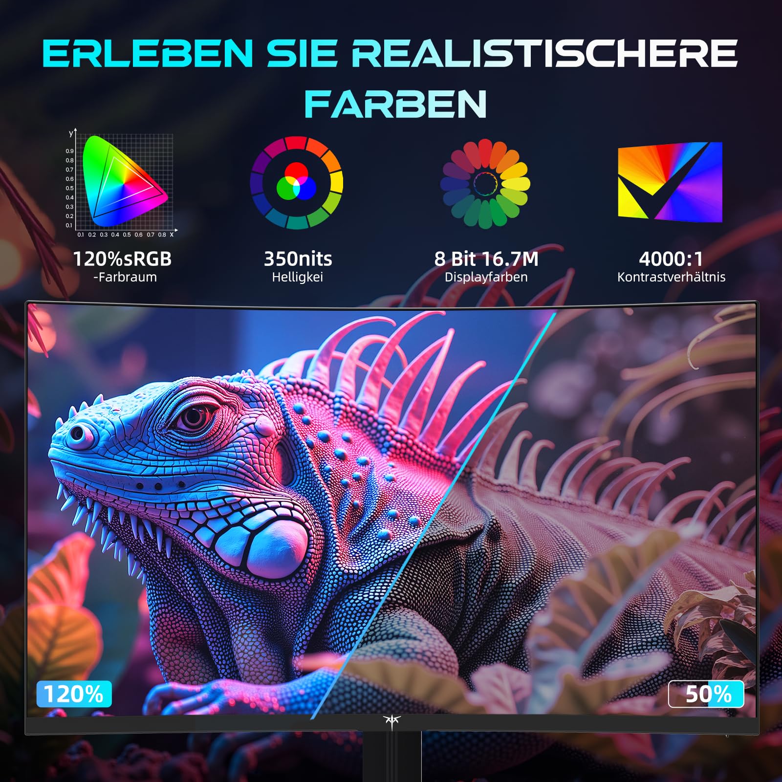 Die QHD-Auflösung (2560 x 1440) liefert gestochen scharfe Details, während die Abdeckung von 120 % des sRGB-Farbraums für aussergewöhnlich lebendige und realitätsnahe Farben sorgt. Dies schafft ein immersives visuelles Erlebnis, bei dem Sie tiefer in die Spielwelt eintauchen können.