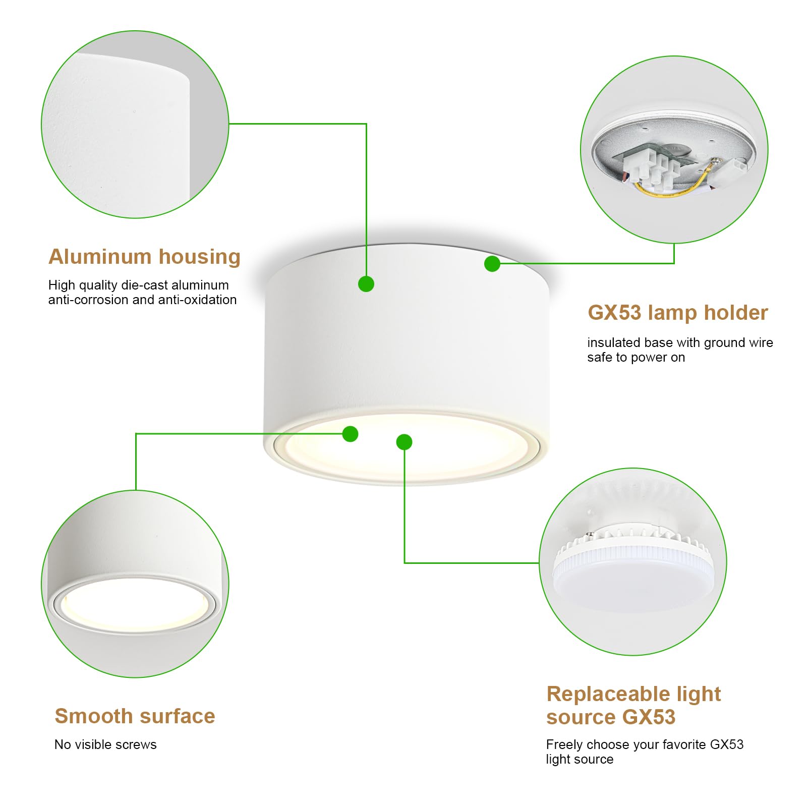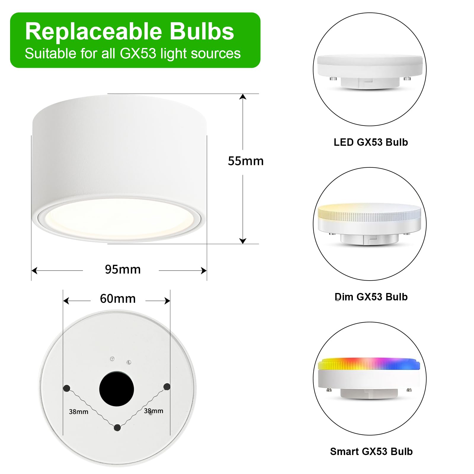 - Sockel: GX53 (Leuchtmittel austauschbar und im Lieferumfang enthalten)