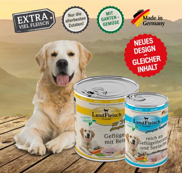 Verwöhnen Sie Ihren vierbeinigen Freund mit Landfleisch Classic, einer ausgewogenen und gesunden Mahlzeit in zehn abwechslungsreichen Sorten. Dieses hochwertige Nassfutter versorgt Ihren Hund mit allen wichtigen Nährstoffen für ein vitales Leben.