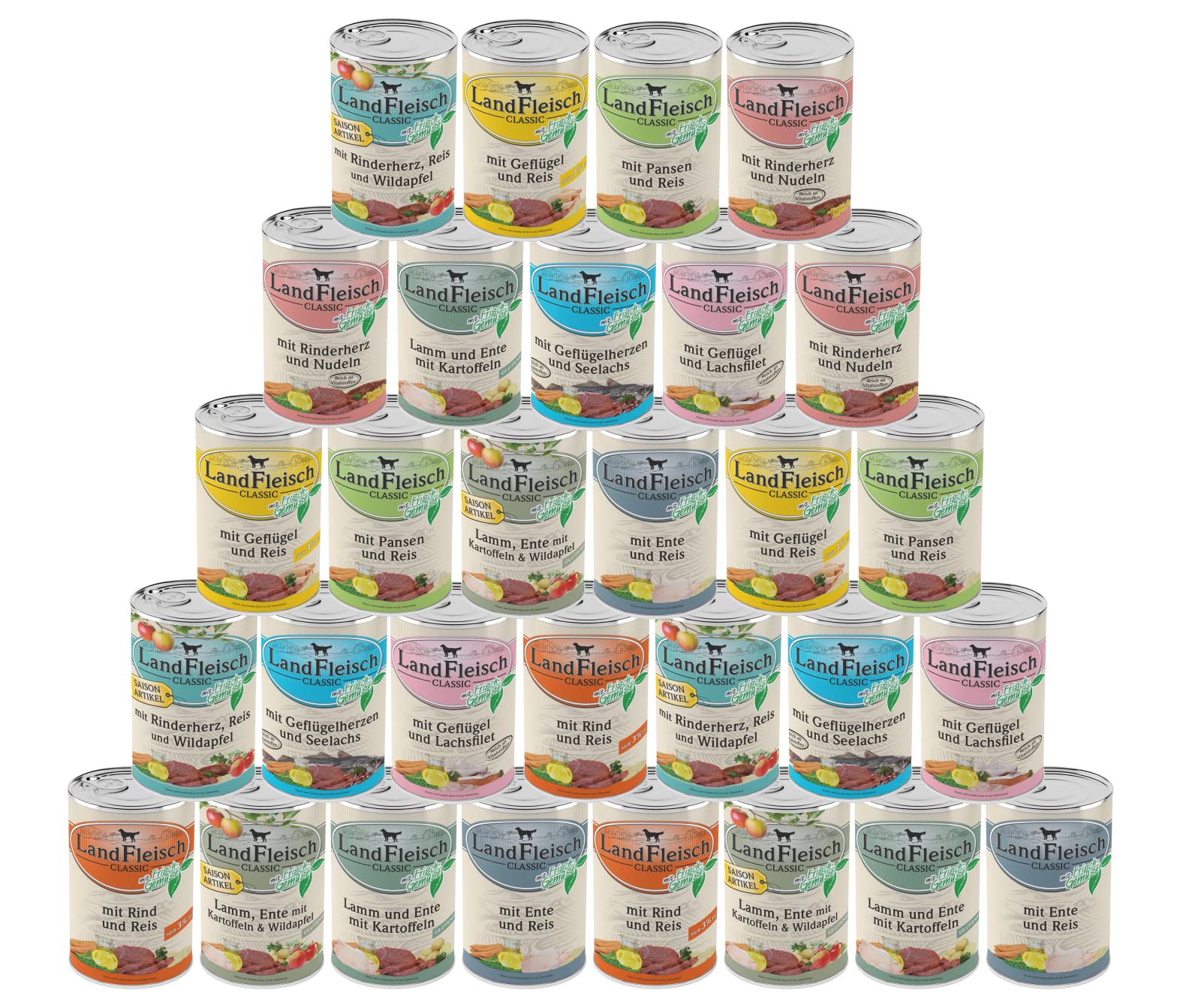 Landfleisch Classic Hundenassfutter – 30x400g 10-Sorten Mix