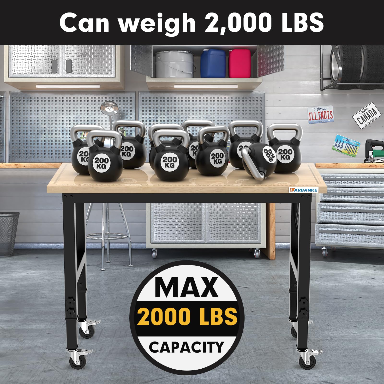 LARBANKE 120CM Schwerlast-Werkbank Hartholz - Höhenverstellbar