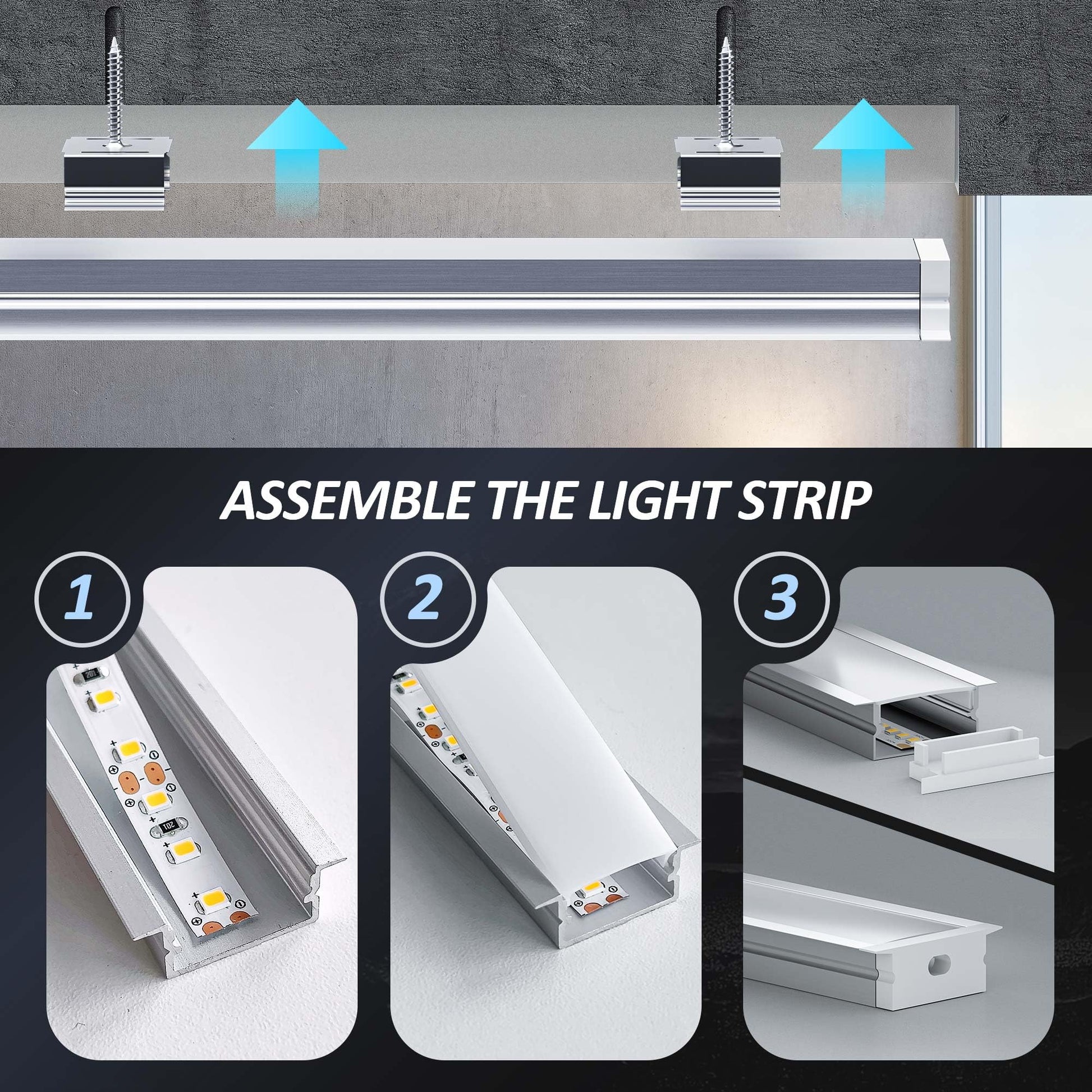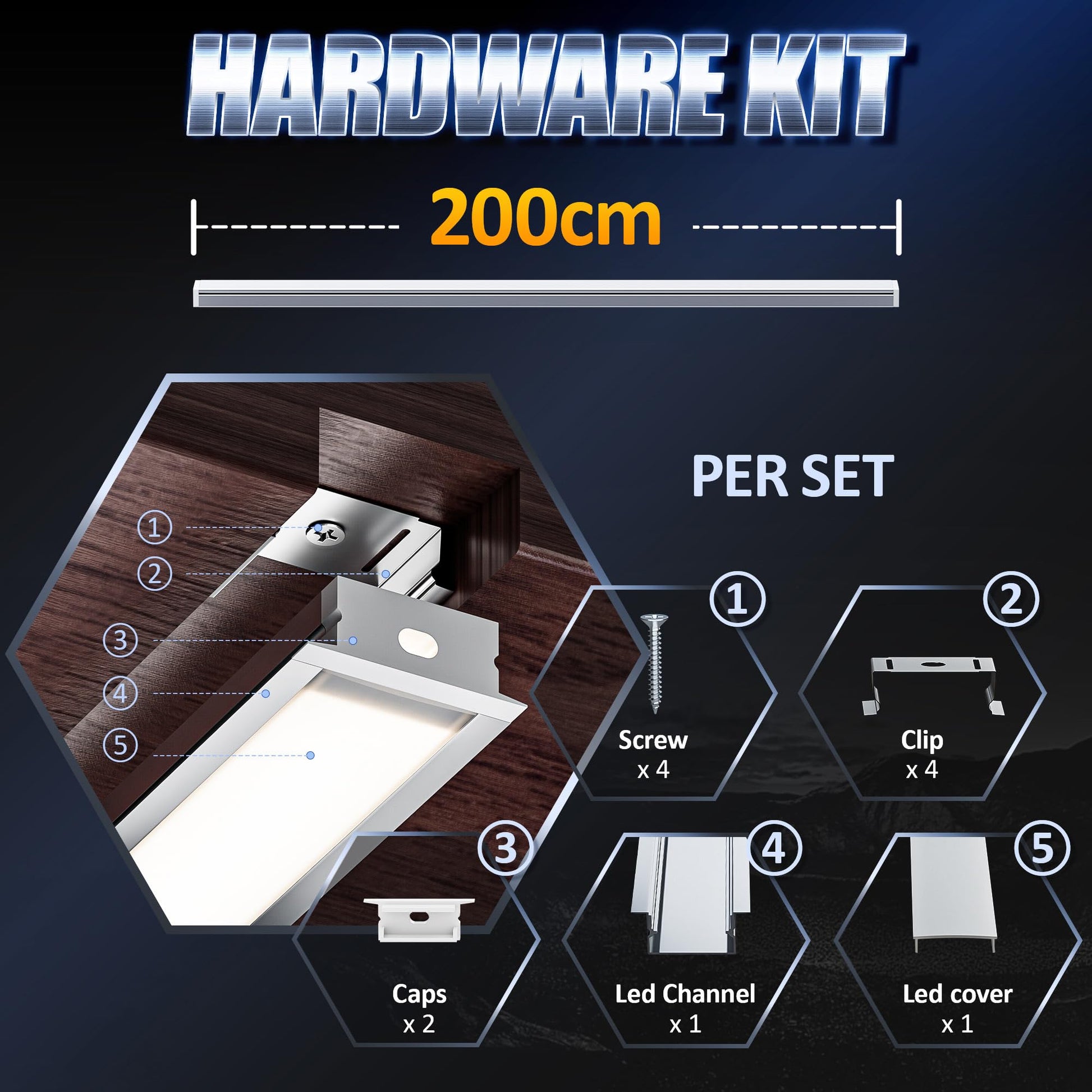 - Umfassendes Set: Beinhaltet 20 Stück 2-Meter-Aluprofile (Gesamtlänge 40 Meter), 40 Endkappen, 80 Montageclips und 80 passende Schrauben für eine sofortige Installation.