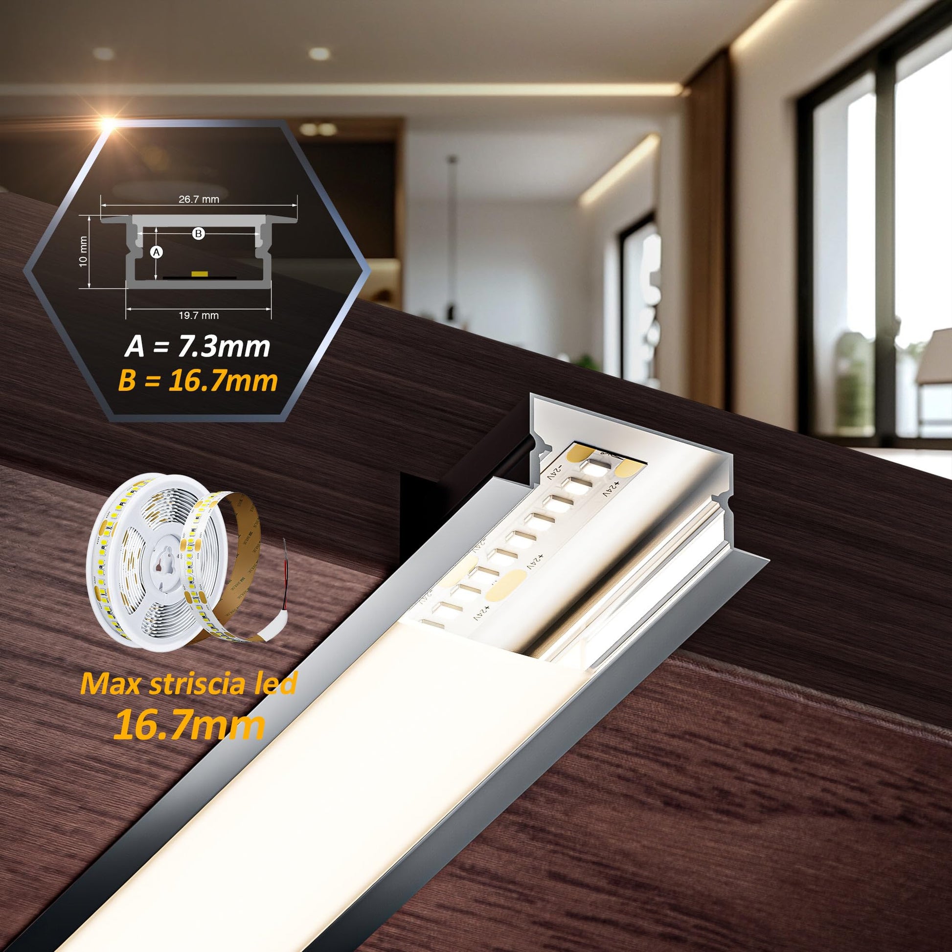 - Dimensionen & Kompatibilität: Mit den Massen 2000 x 19.7 x 10 mm und einer inneren Breite von 16.7 mm sind die Profile perfekt für gängige LED-Streifen wie Typen 3528, 5050 und 5630 geeignet.