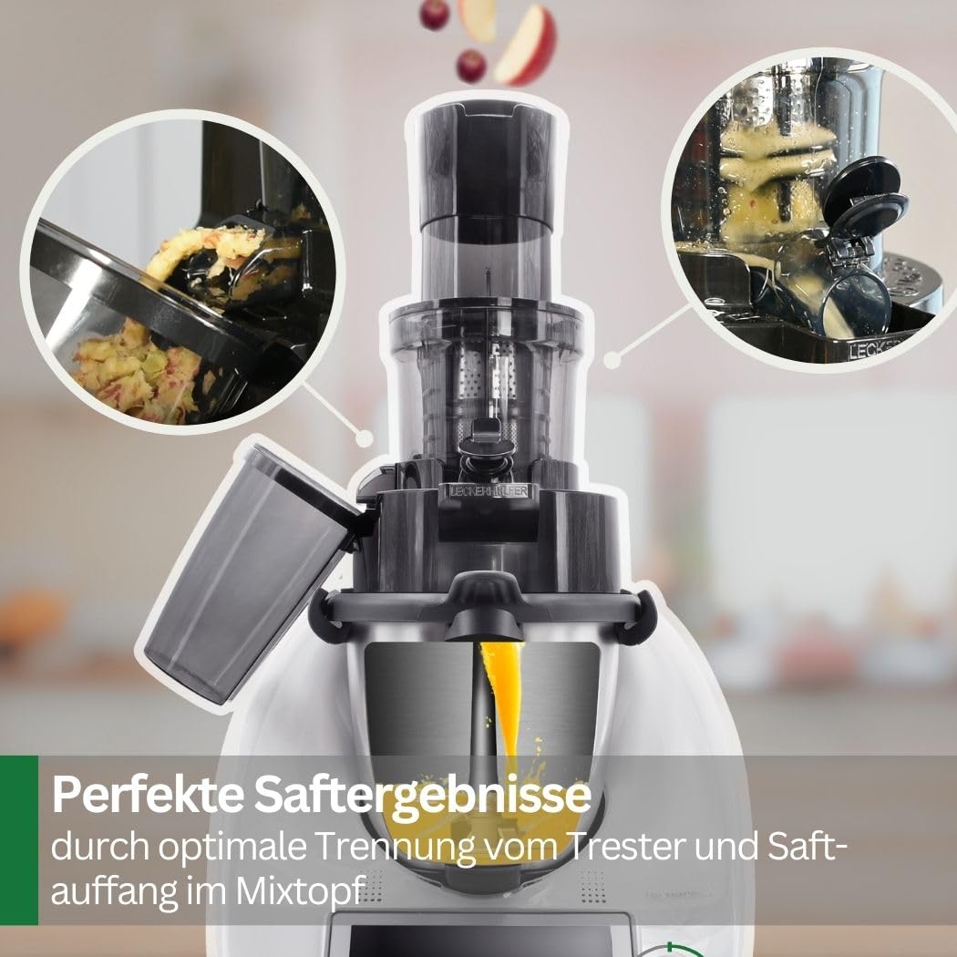 Der Leckerhelfer® SaftPRO ist das massgeschneiderte Zubehör, das Ihren Thermomix TM5 oder TM6 mühelos in einen hochwertigen Slow Juicer verwandelt. Erweitern Sie die Funktionalität Ihrer Küchenmaschine und geniessen Sie im Handumdrehen frische, kaltgepresste Säfte.