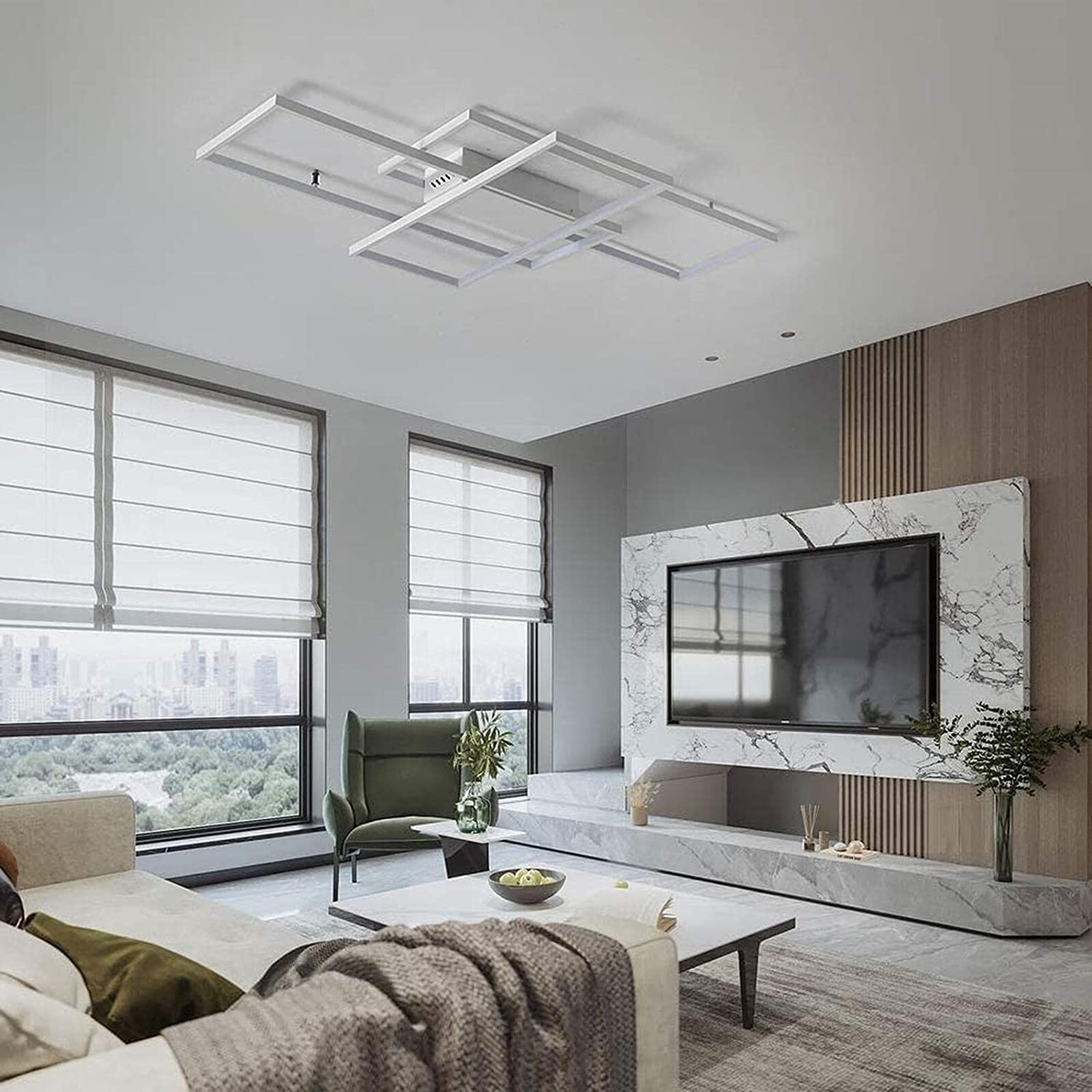 - Modernes Design: Die Leuchte besteht aus drei versetzt angeordneten, rechteckigen Elementen, die eine geometrische und minimalistische Ästhetik schaffen.