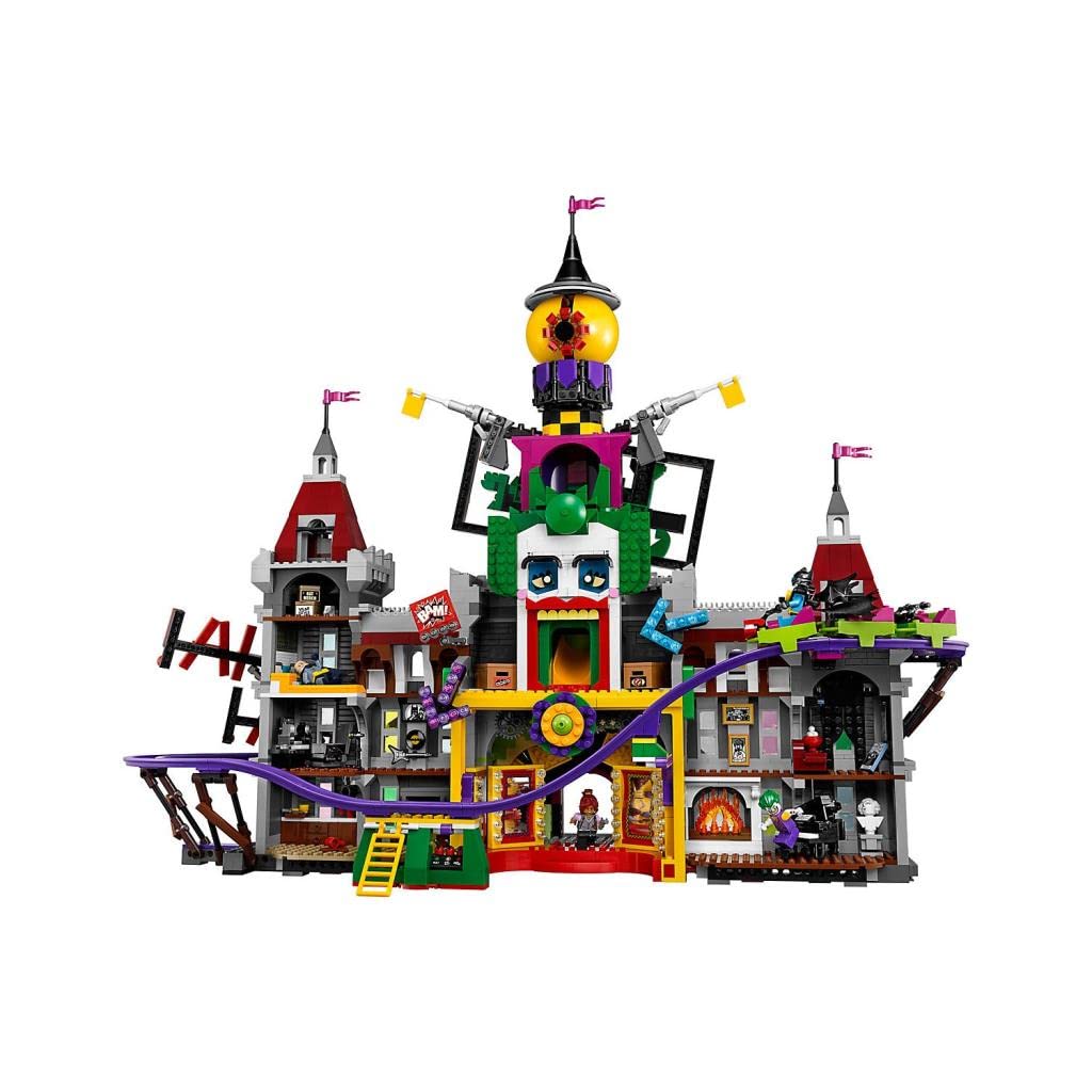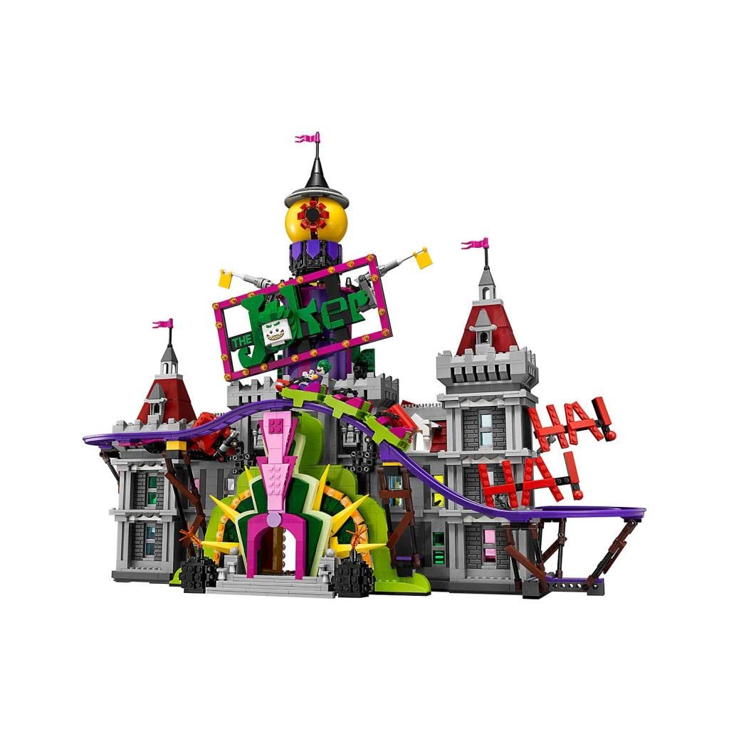 Das Set enthält 10 Minifiguren: Der Joker™, Batman™, Barbara Gordon, Harley Quinn™, Nightwing™, Alfred Pennyworth™ im Batsuit sowie die exklusiven Disco-Versionen von Batman™, Joker™, Batgirl™ und Robin™. Zu den Highlights gehören eine funktionierende Achterbahn, die das Gebäude umrundet, ein riesiger Joker-Kopf mit Falltür und Rutsche, schlagende Boxhandschuhe und zahlreiche detailreiche Innenräume wie ein Kino und ein Musikstudio.