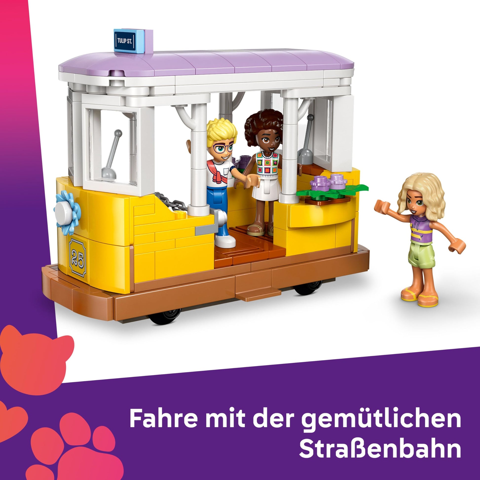 - Vielseitiges Spielset: Ein detailreiches Modell, das ein charmantes Pflanzencafé, einen bunten Blumenkiosk und eine befahrbare Strassenbahn kombiniert.