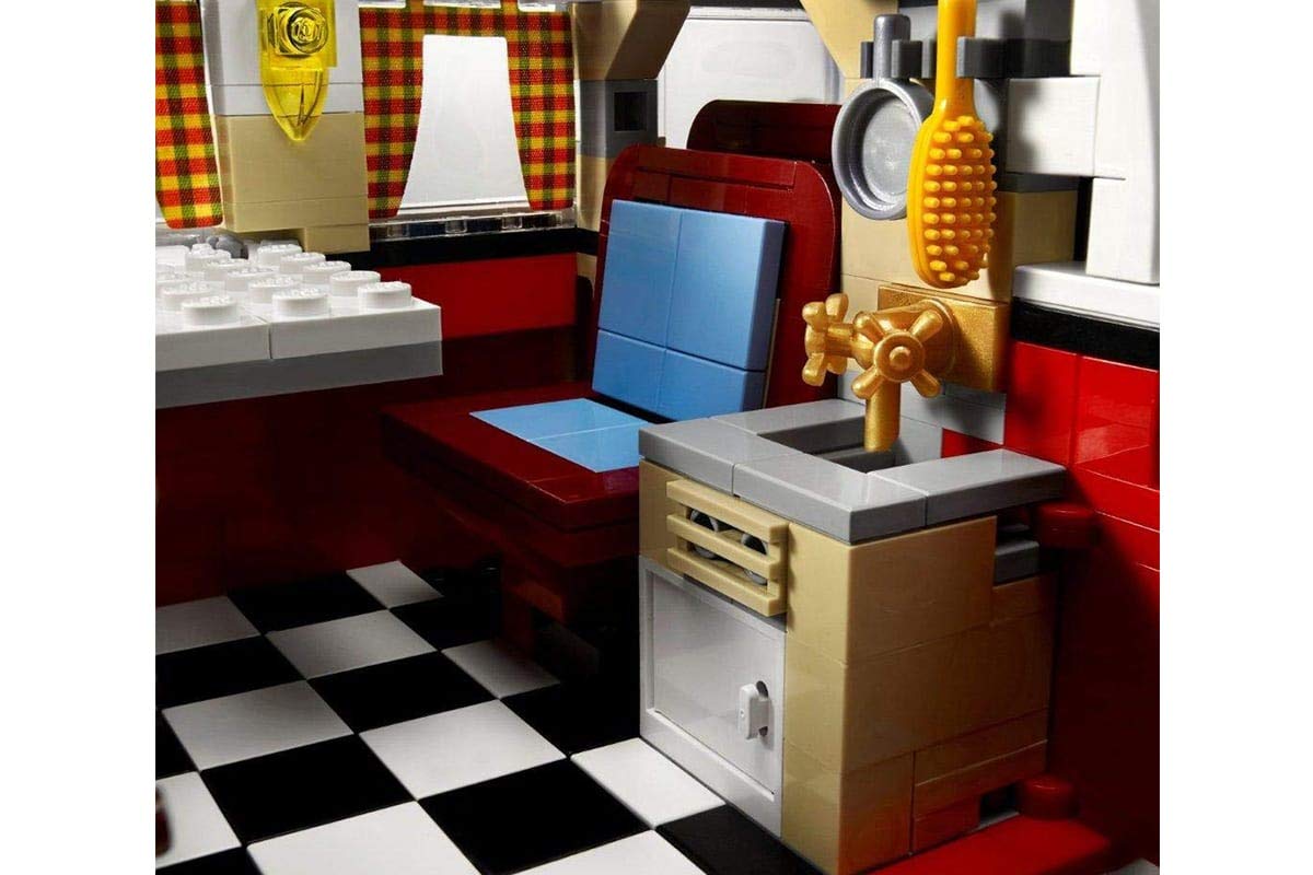 - Zahlreiche liebevolle Details wie Aussenspiegel, ein T-Shirt mit dem Aufdruck 'Make LEGO Models, Not War' und eine Pflanze für die Heckablage.