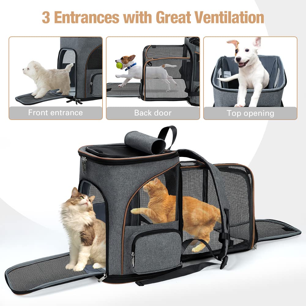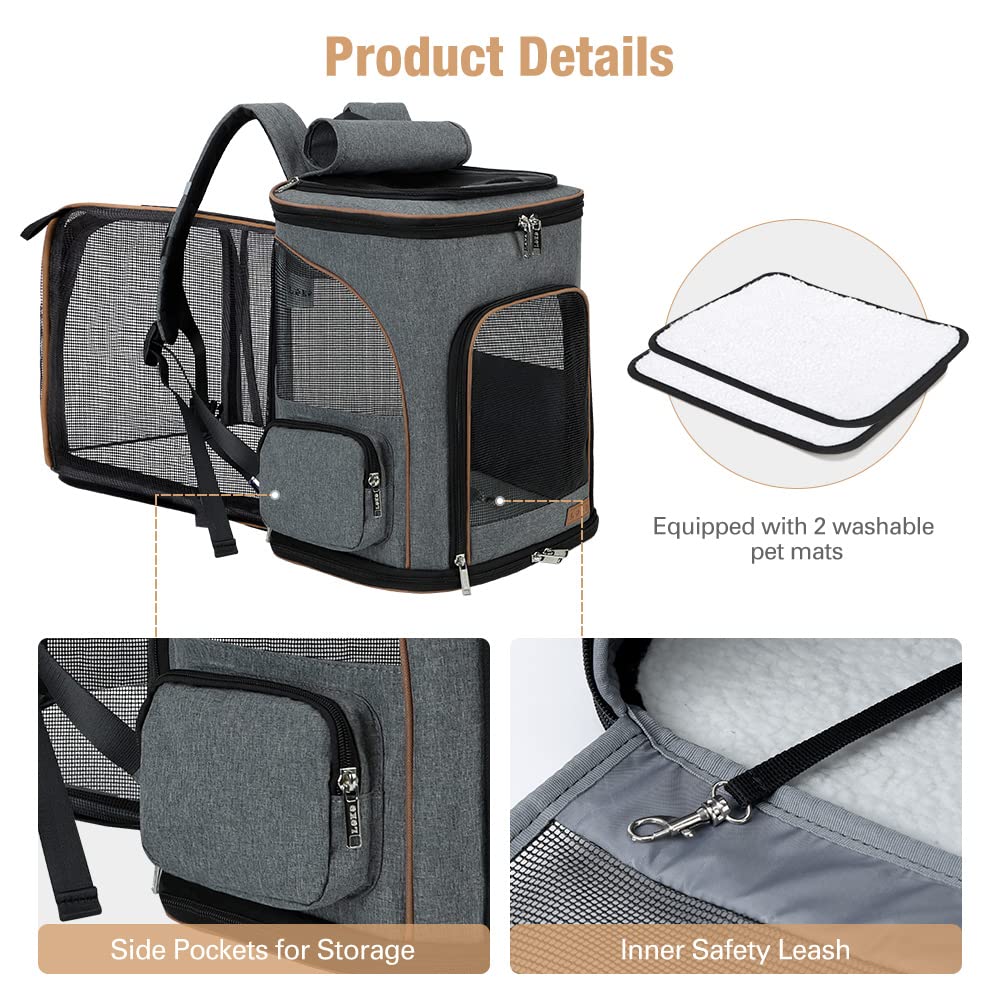 Lekesky Katzen-Hunderucksack erweiterbar - Grau XL (bis 10kg)