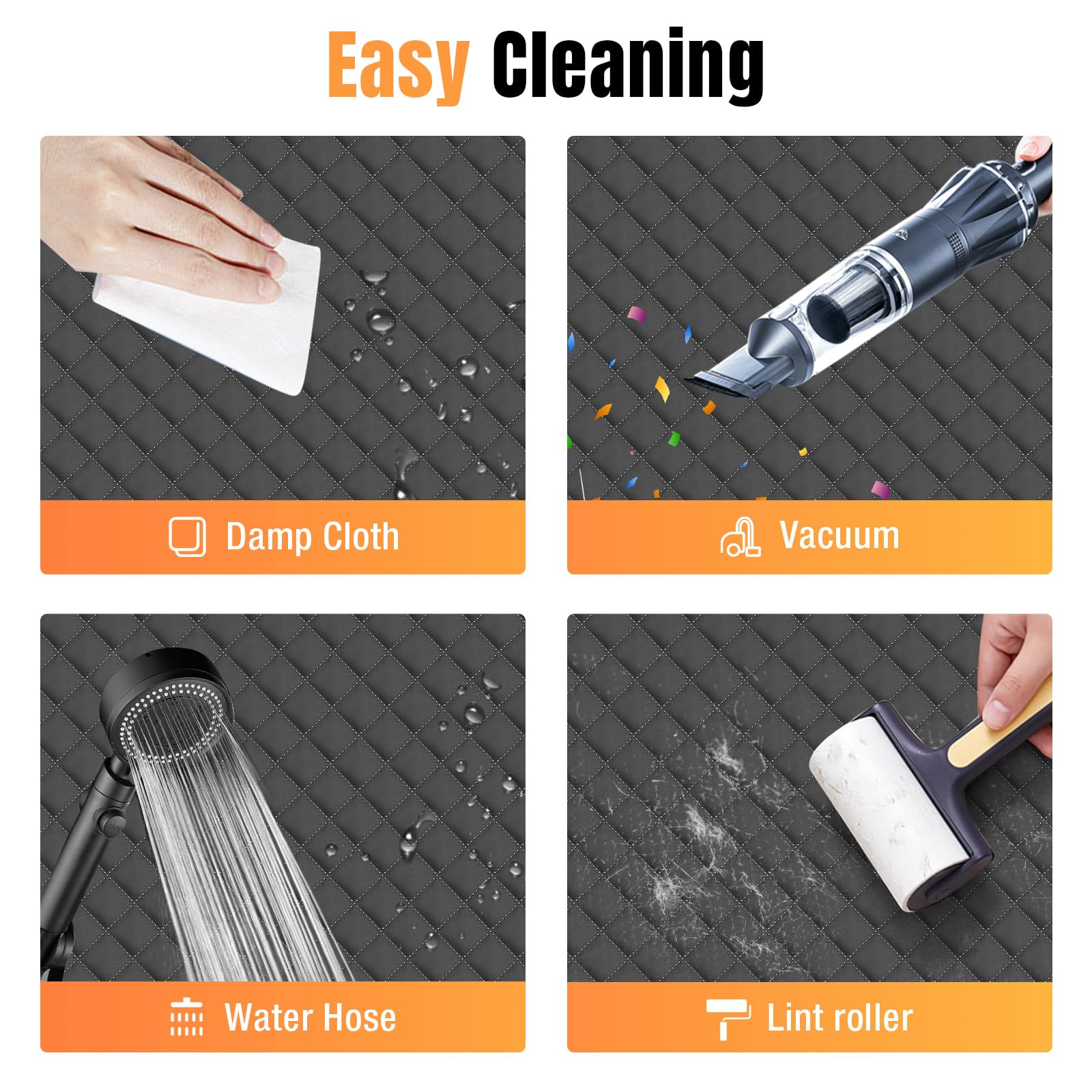 Die Decke schützt Ihr Fahrzeug auf mehreren Ebenen: Das strapazierfähige, wasserfeste Material hält Sitze frei von Haaren, Schmutz und Feuchtigkeit. Zusätzlich schützen praktische Seitenklappen die Türverkleidungen vor Kratzern, die beim Ein- und Aussteigen entstehen können.