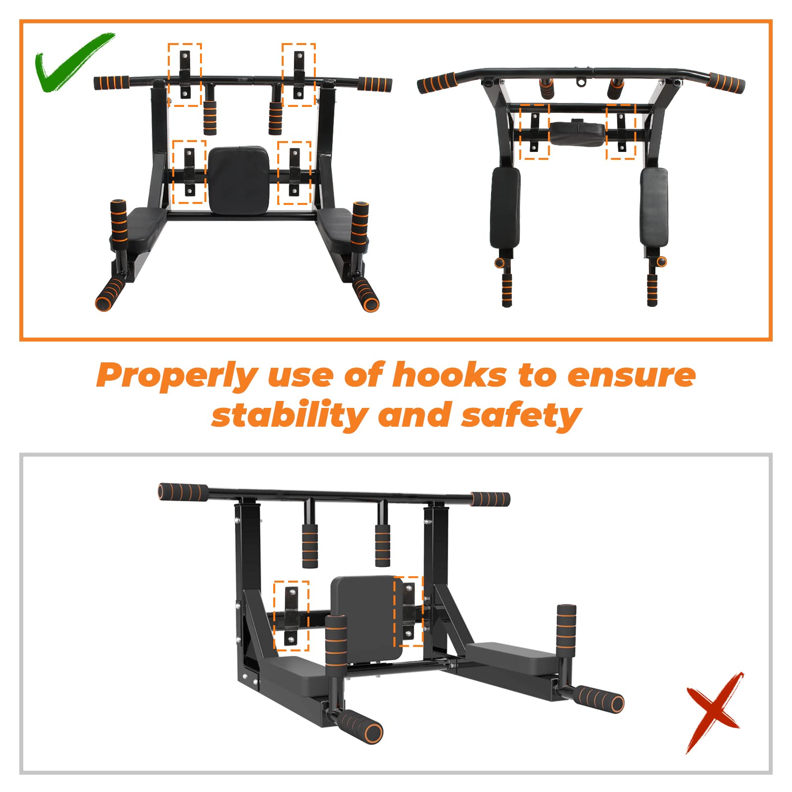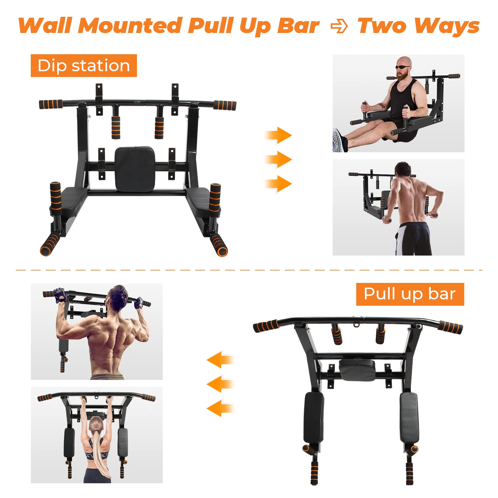 - 2-in-1-Funktionalität: Nutzen Sie das Gerät wahlweise als Klimmzugstange oder als Dip-Station. Es ermöglicht eine breite Palette an Übungen, darunter Klimmzüge, Chin-ups, Dips, Beinheben und sogar Box-Training.