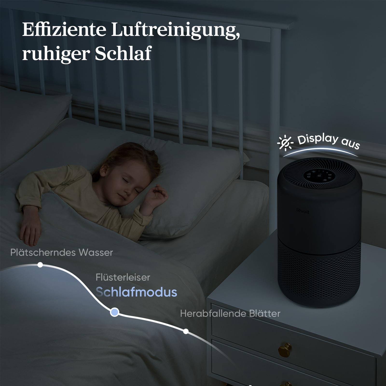 - Flüsterleiser Schlafmodus: Im Schlafmodus arbeitet das Gerät mit nur 24 dB nahezu geräuschlos. Gleichzeitig wird die Display-Beleuchtung komplett deaktiviert, um Ihren Schlaf nicht zu stören.