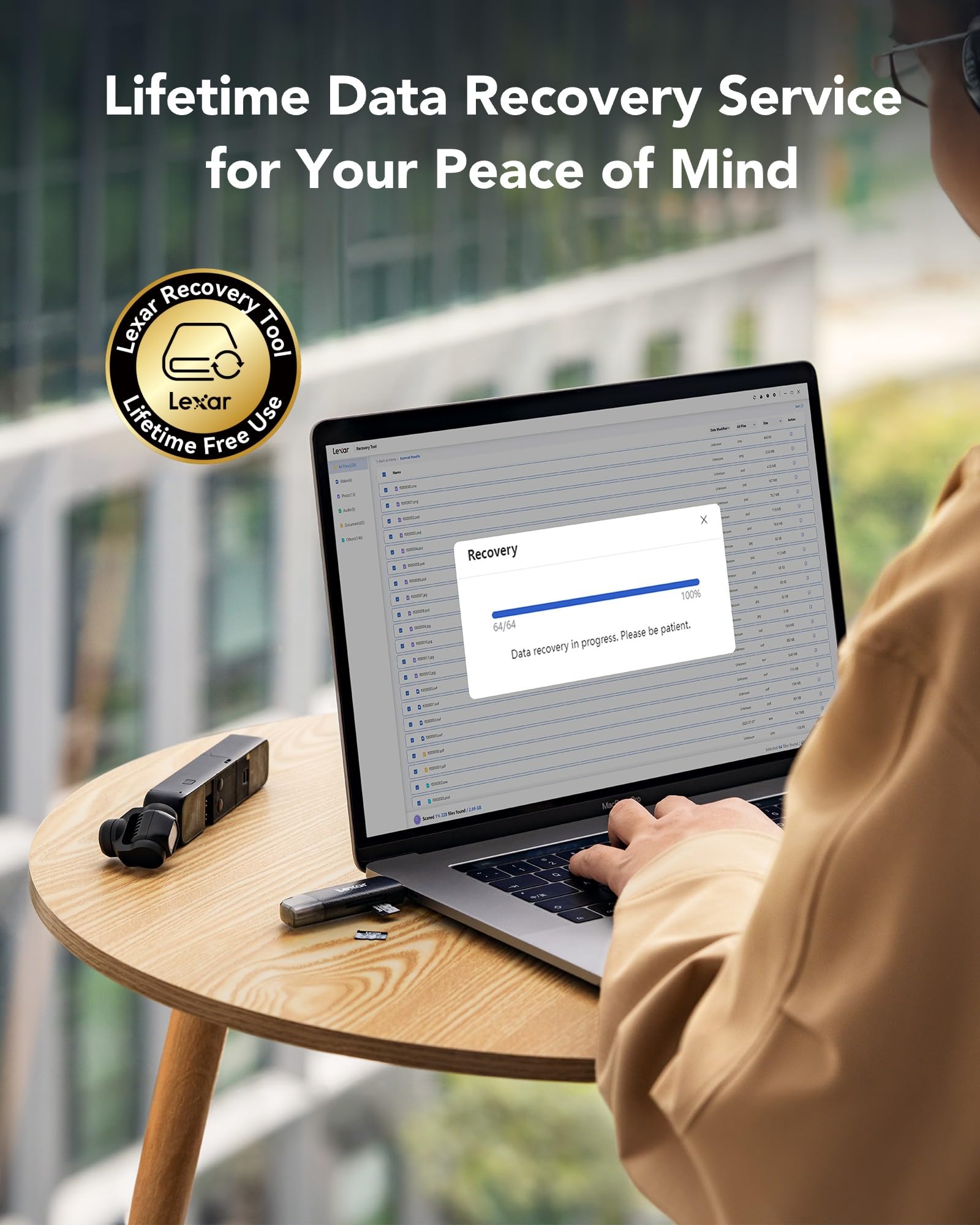 Zusätzliche Sicherheit und Sorgenfreiheit: Im Lieferumfang ist das Lexar Recovery Tool enthalten, eine Software zur Wiederherstellung versehentlich gelöschter Dateien. Eine lebenslange, eingeschränkte Garantie gibt Ihnen zusätzlich die Gewissheit, eine zuverlässige Wahl getroffen zu haben.