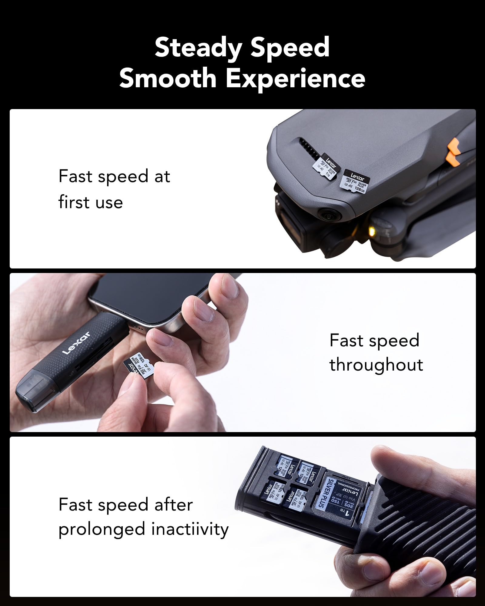 - Umfassende Kompatibilität: Die Karte wurde auf ihre Kompatibilität mit einer Vielzahl von Geräten getestet, darunter Smartphones, Tablets, Action-Cams (z.B. GoPro), Drohnen (z.B. DJI) sowie mobile Spielkonsolen wie Switch und SteamDeck.