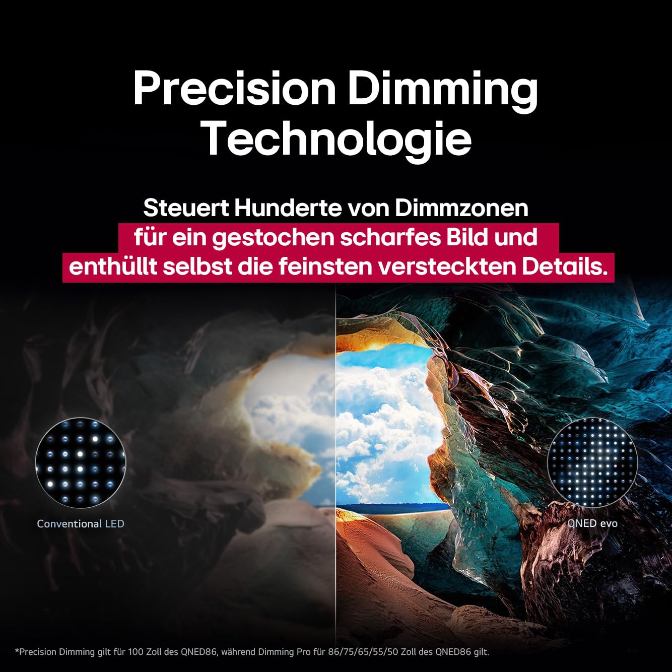 - Bildtechnologie: 4K QNED evo AI TV mit Dynamic QNED Color-Display, LED-Backlight und Advanced Local Dimming für reinste Farben und hohe Kontraste.