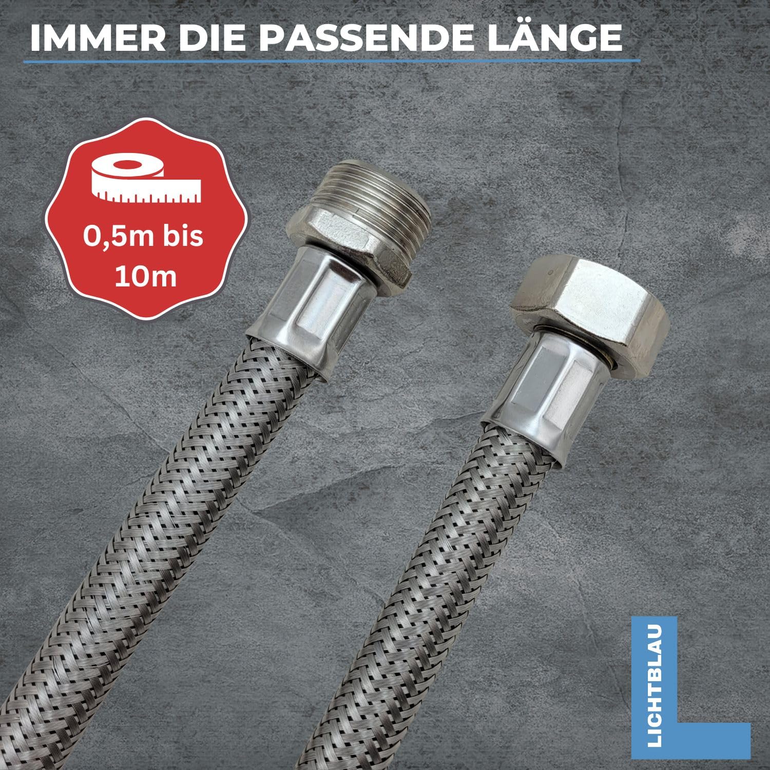Der Schlauch ist aus hochwertigem, knickfestem Edelstahl gefertigt. Dieses robuste Material gewährleistet eine lange Lebensdauer, schützt vor Wasserschäden und sorgt für eine absolut dichte Verbindung.