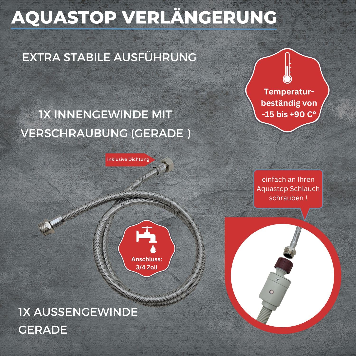 Absolut. Dieser Panzerschlauch ist ideal dafür konzipiert, den Wasserzulauf sicher zu verlängern. Er wird einfach zwischen dem Wasserhahn und dem originalen Aquastop-Schlauch Ihres Geräts montiert.