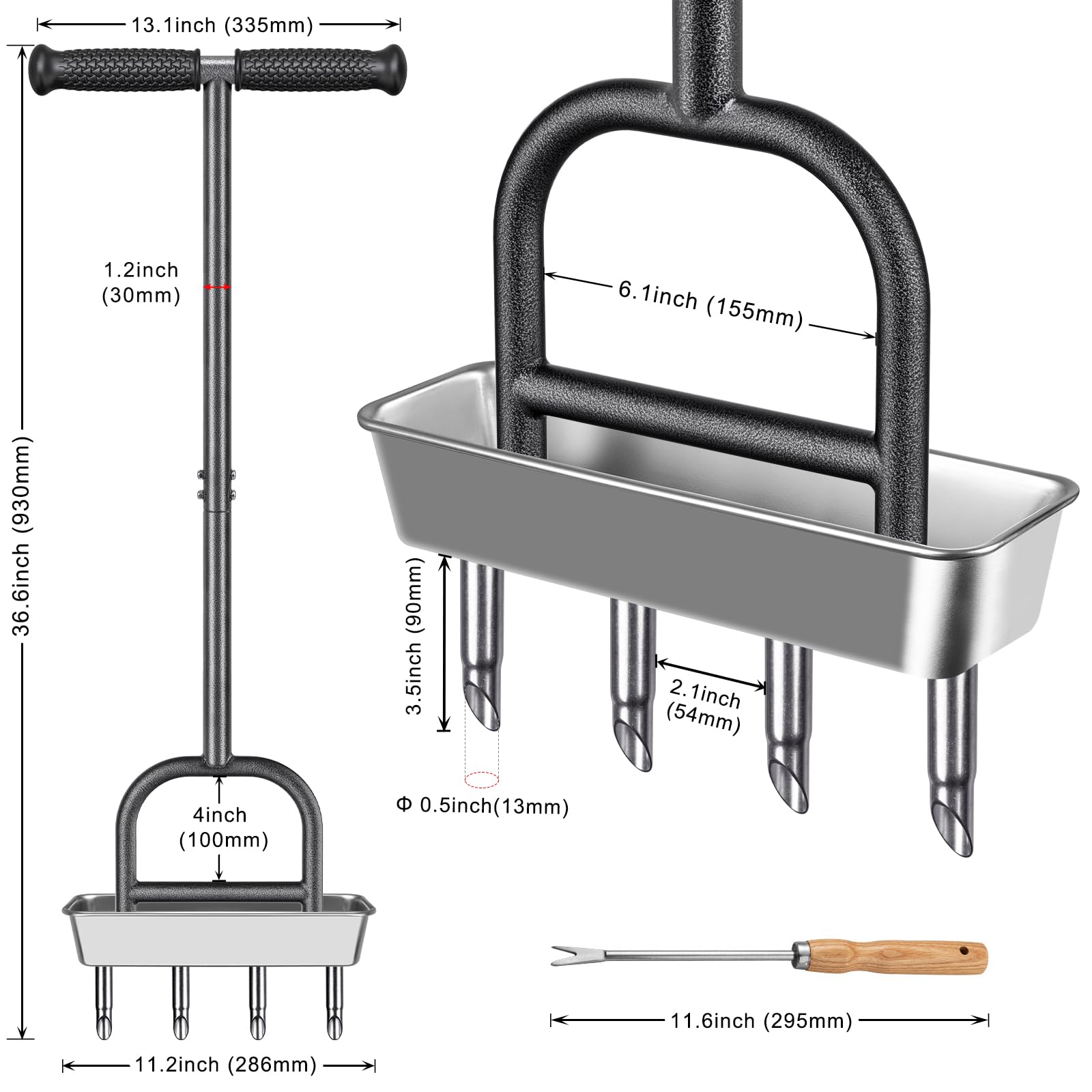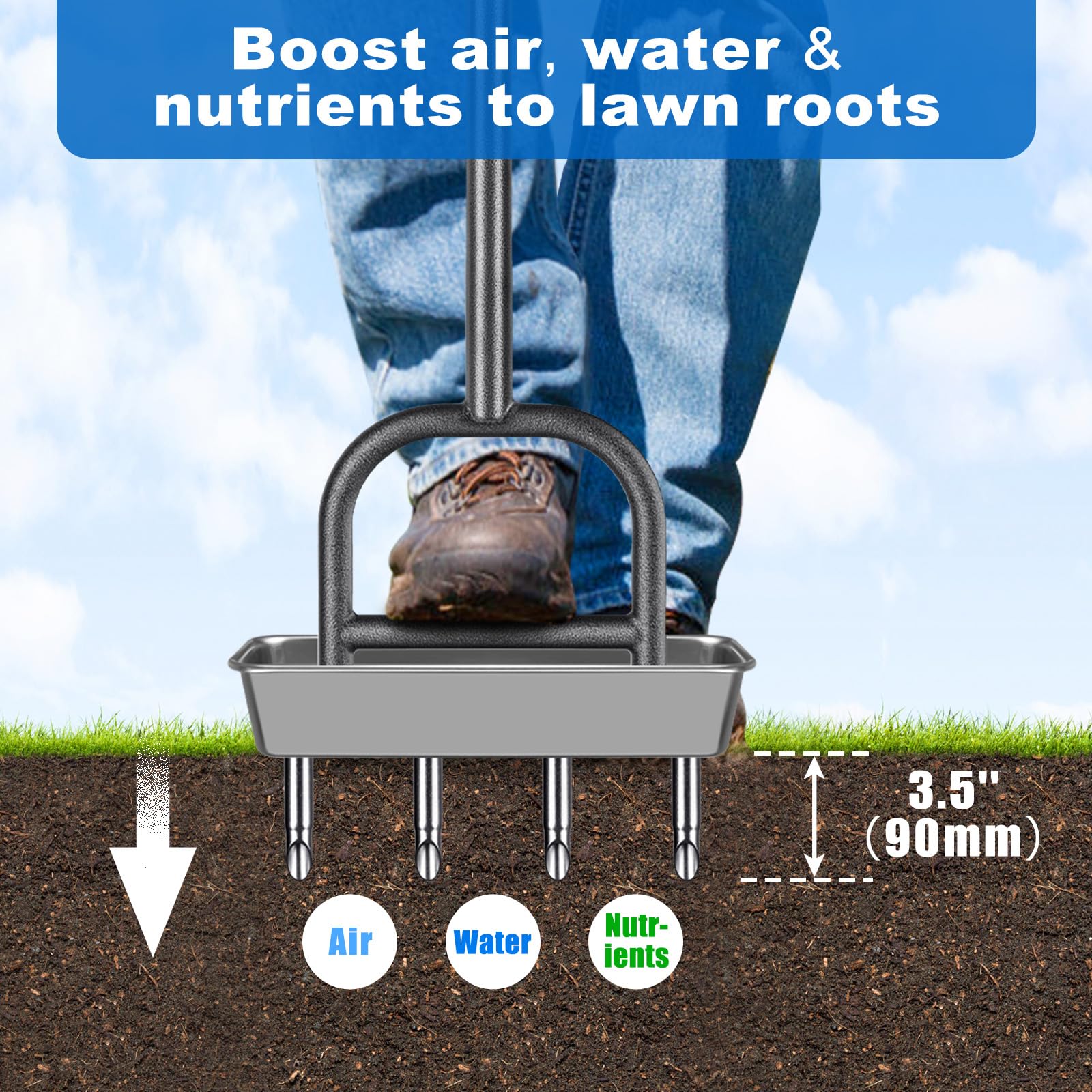 - Tiefenwirksame Belüftung: Vier scharfe, 8.9 cm lange Hohlzinken aus Edelstahl dringen mühelos in den Boden ein und sorgen für eine optimale Versorgung der Graswurzeln.