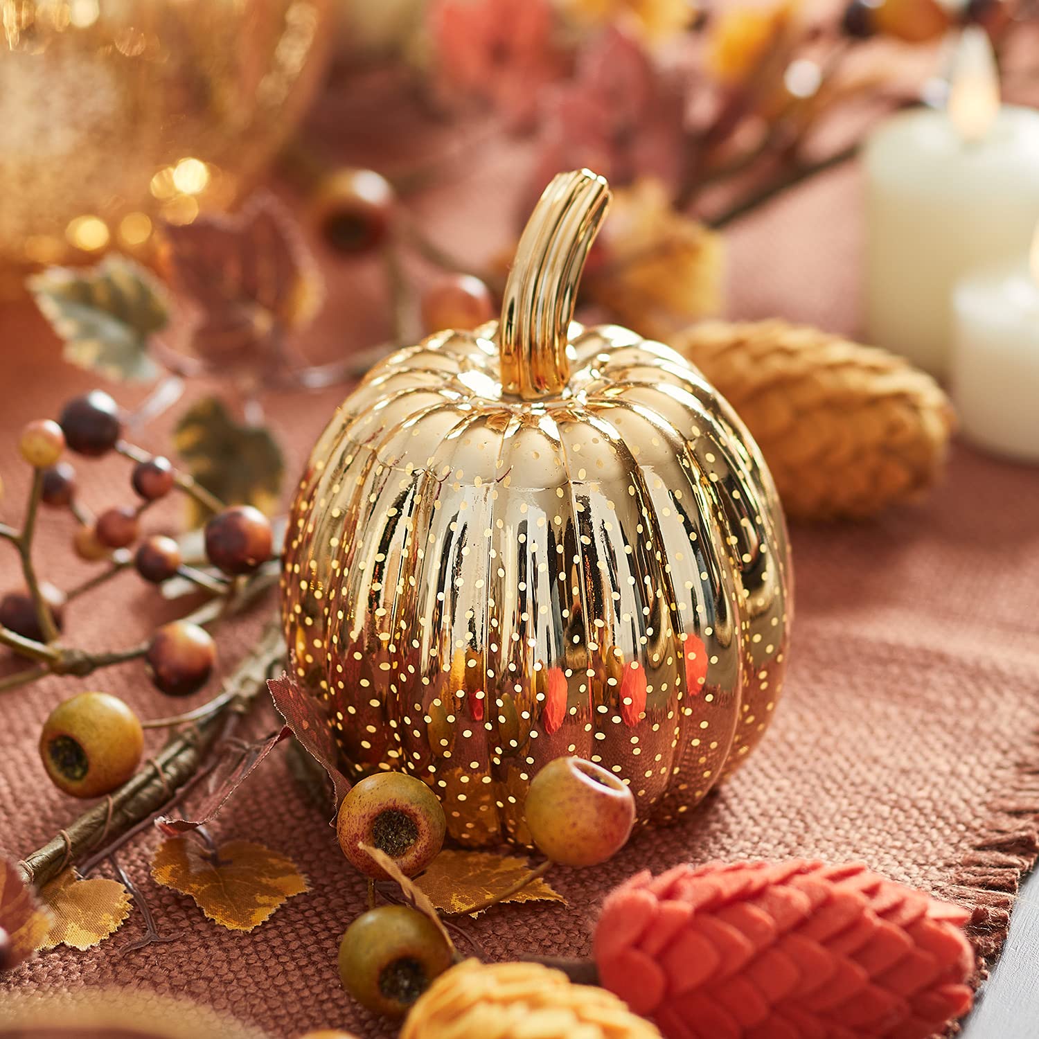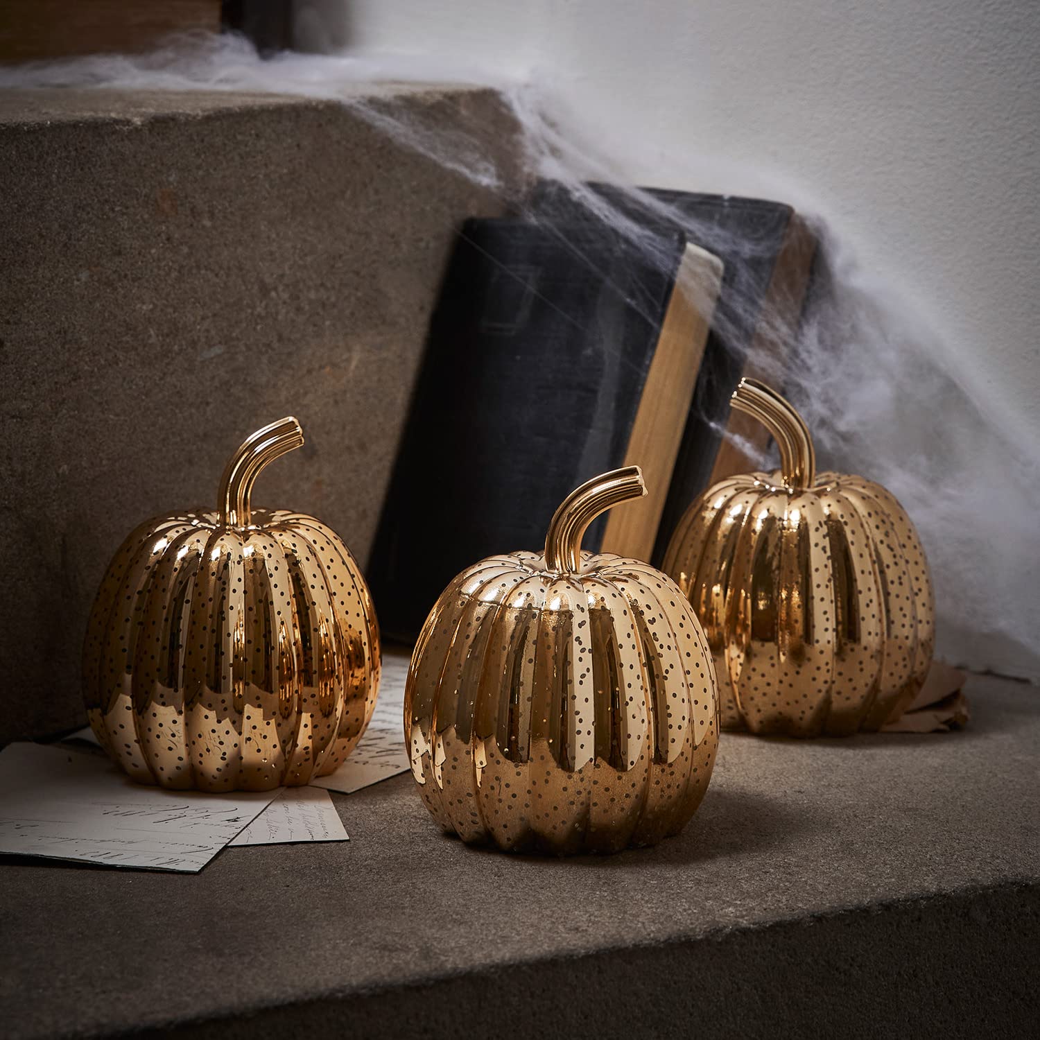 - Inhalt: Set aus 3 Kürbissen, gefertigt aus edlem, goldfarbenem Glas.