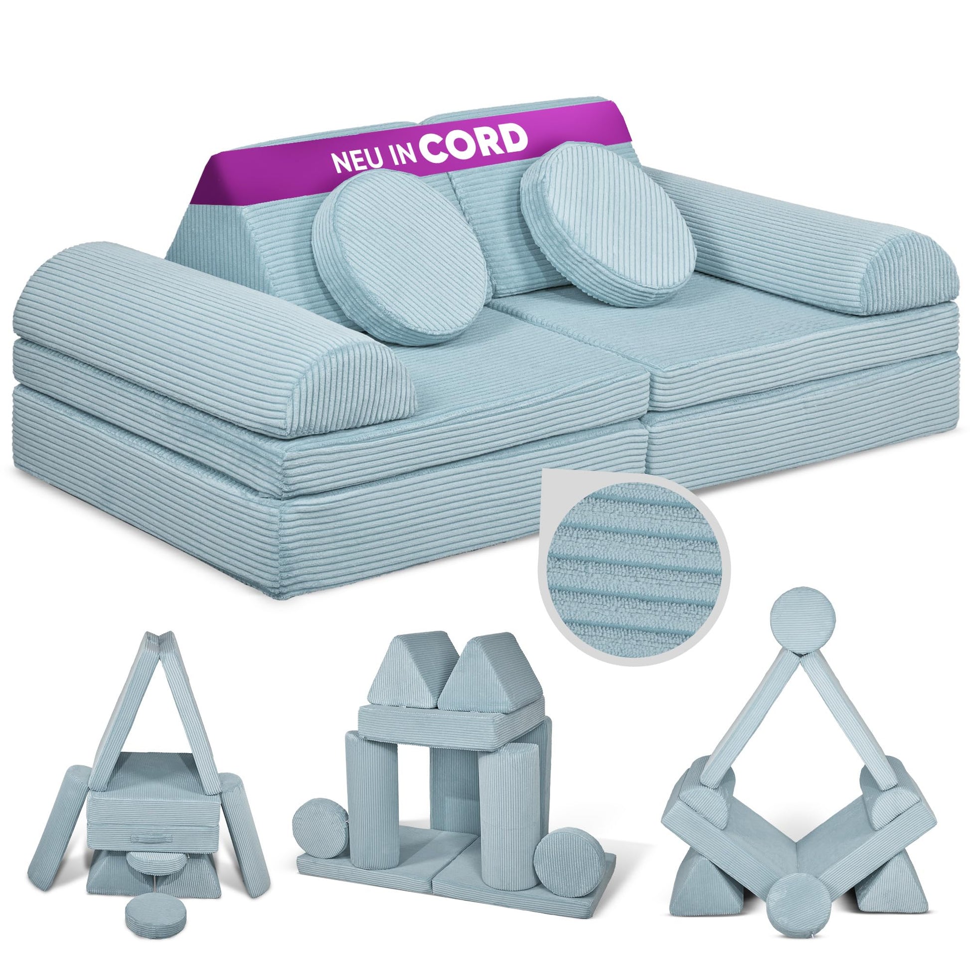 Linodino Spielsofa Cord Fantasiewelt Softbausteine - Einhornblau