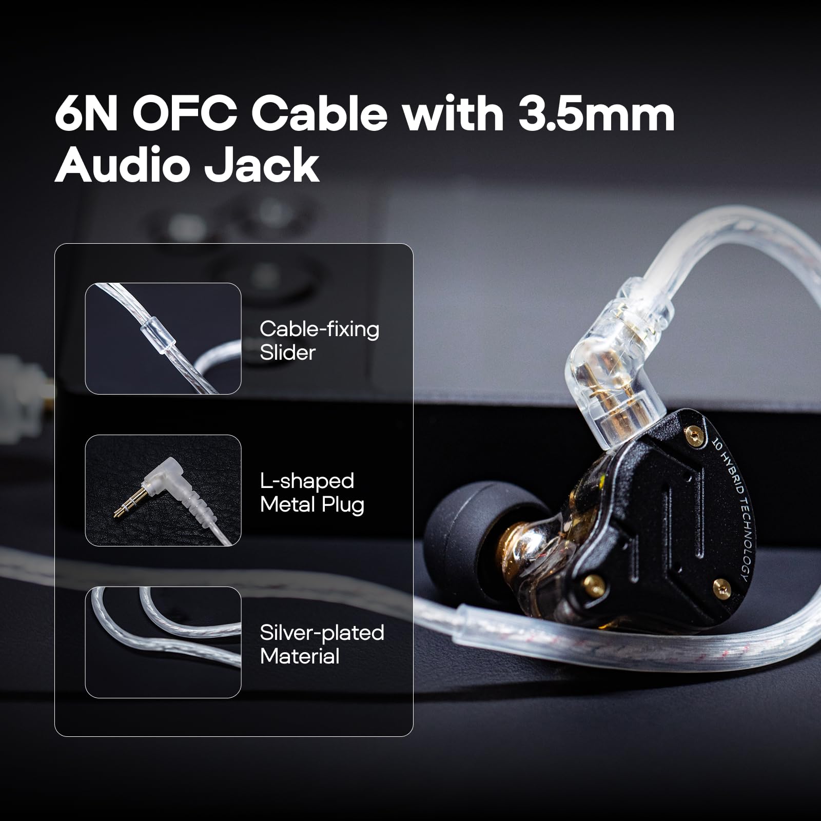 - Abnehmbares QDC-Kabel: Ein vergoldetes 2-Pin-Kabel ermöglicht einen einfachen Austausch oder eine Aufrüstung und sorgt dank Stiftschutz für eine lange Lebensdauer.