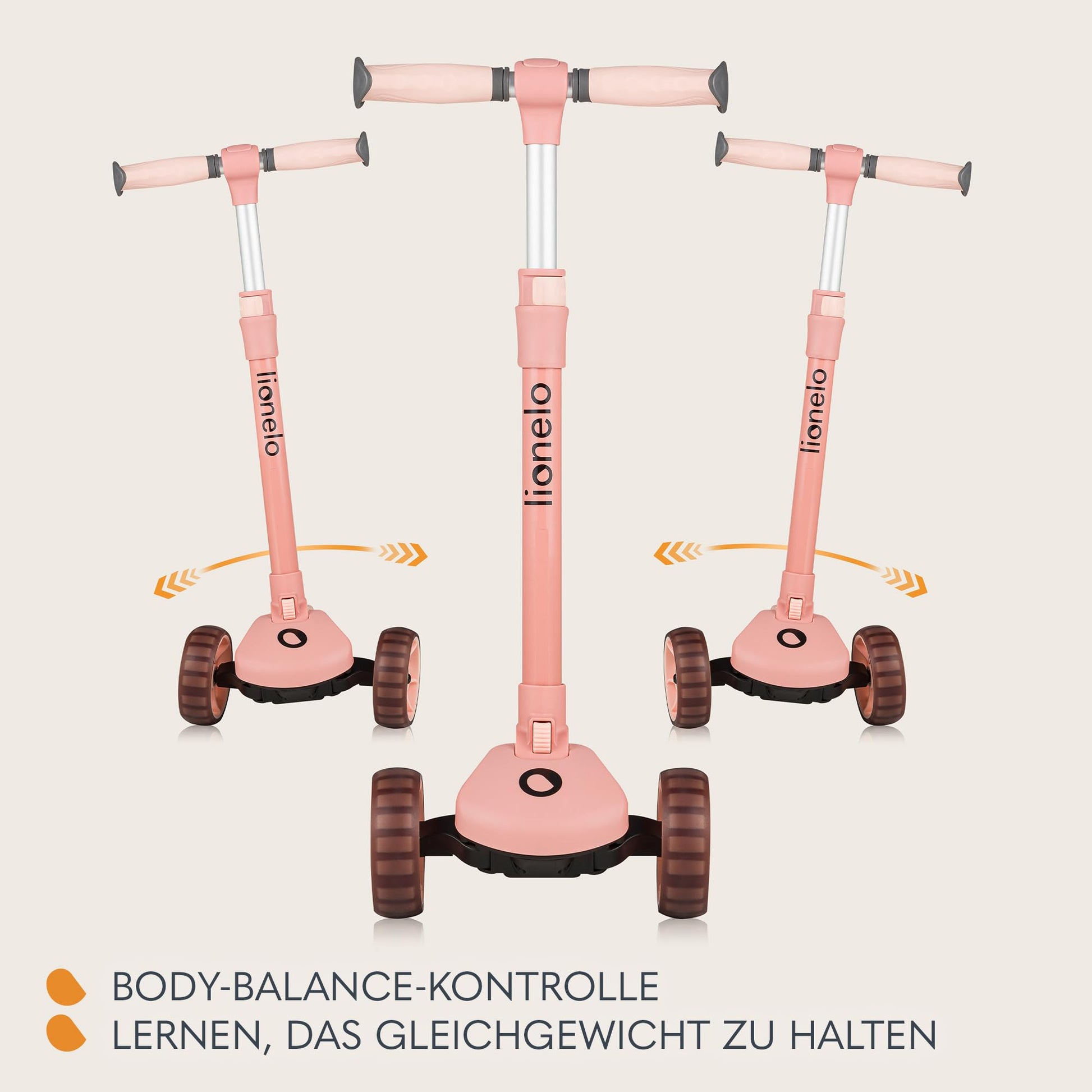 Der LIONELO Franky bietet umfassende Sicherheit durch ein rutschfestes Trittbrett für festen Stand, eine intuitive Hinterradbremse für kontrolliertes Anhalten und einen speziellen 65-Grad-Lenkeinschlagbegrenzer, der ein Umkippen durch zu starkes Einlenken verhindert. Die drei Räder sorgen zudem für maximale Stabilität.