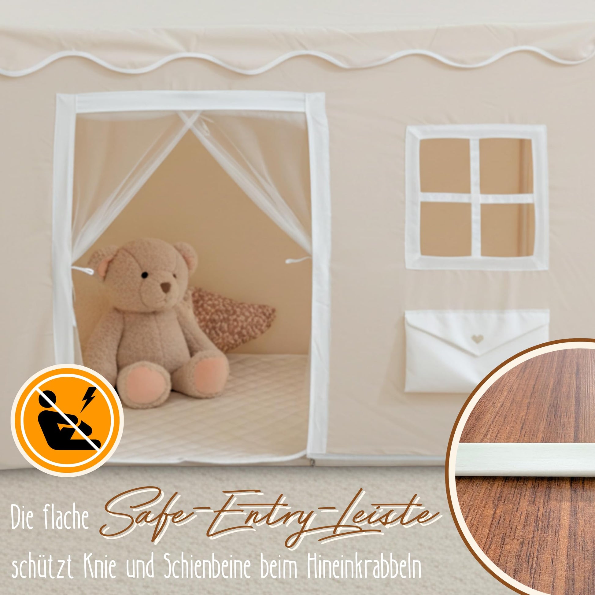 Geborgenheit schenken: Dank des blickdichten Vorhangs wird das Spielhaus zur sicheren Höhle und zu einem wertvollen Rückzugsort im Kinderzimmer. Hier findet Ihr Kind Ruhe und Geborgenheit, was die Eigenständigkeit und eine gesunde Entwicklung unterstützt. Dieser private Raum stärkt nachweislich Resilienz und Selbstvertrauen.