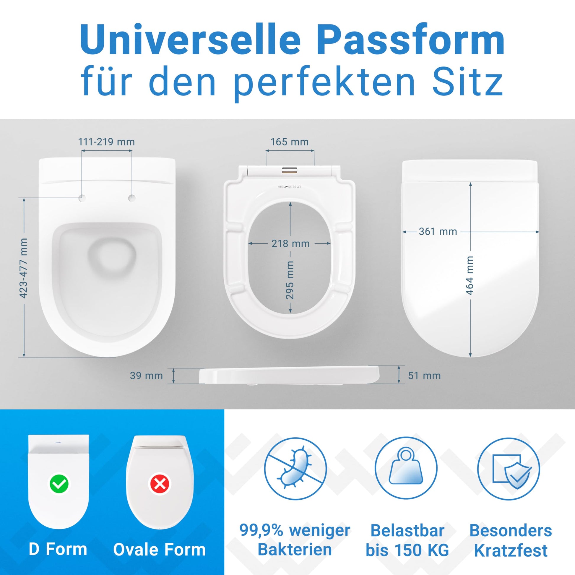 - Passform: Lange D-Form, ideal für moderne WCs mit 4-5 cm hohem Deckel
