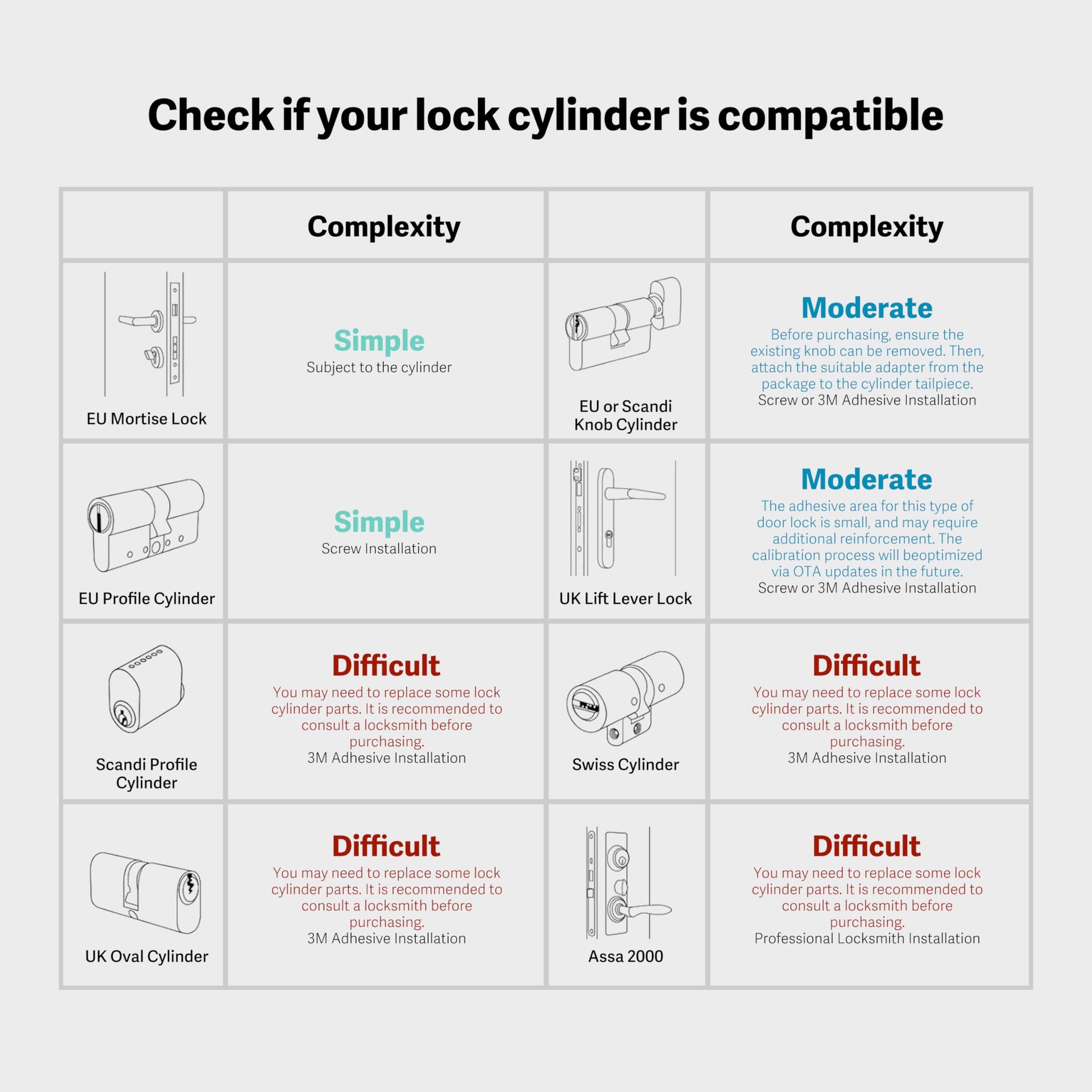 - Einfache Nachrüstung: Die Montage erfolgt in nur 10-15 Minuten an der Innenseite Ihrer Tür, ohne dass das ursprüngliche Schloss ausgebaut werden muss.