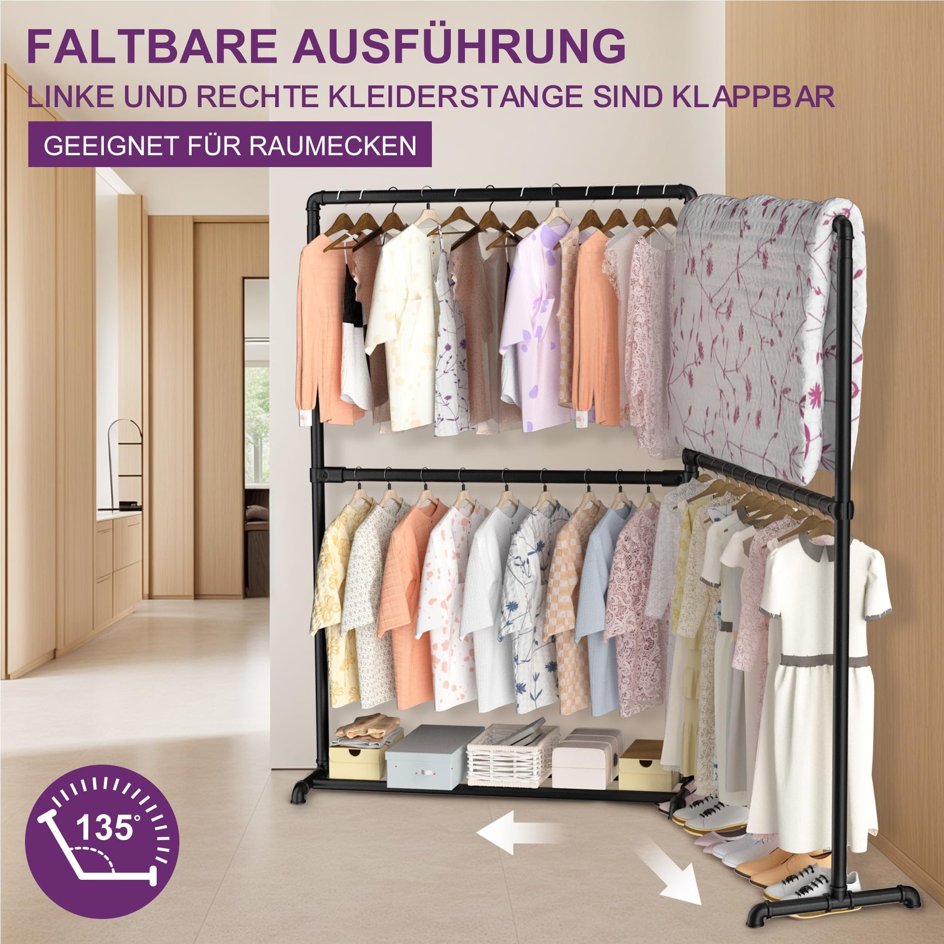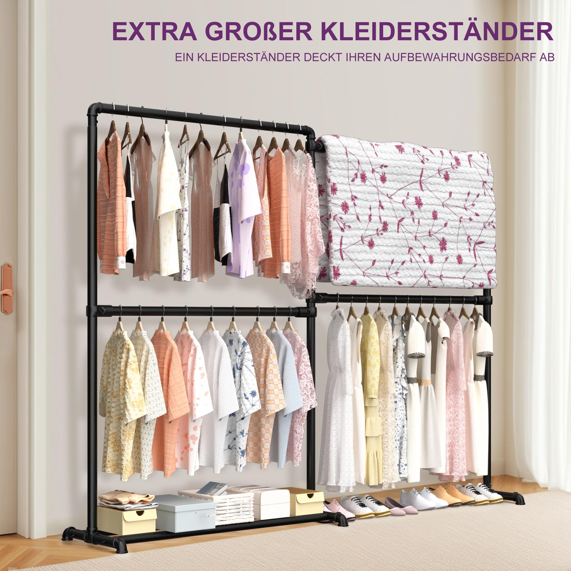 Dieser Kleiderständer ist die perfekte Kombination aus hoher Kapazität, Stabilität und stilvollem Design für eine organisierte und ansprechende Garderobe.