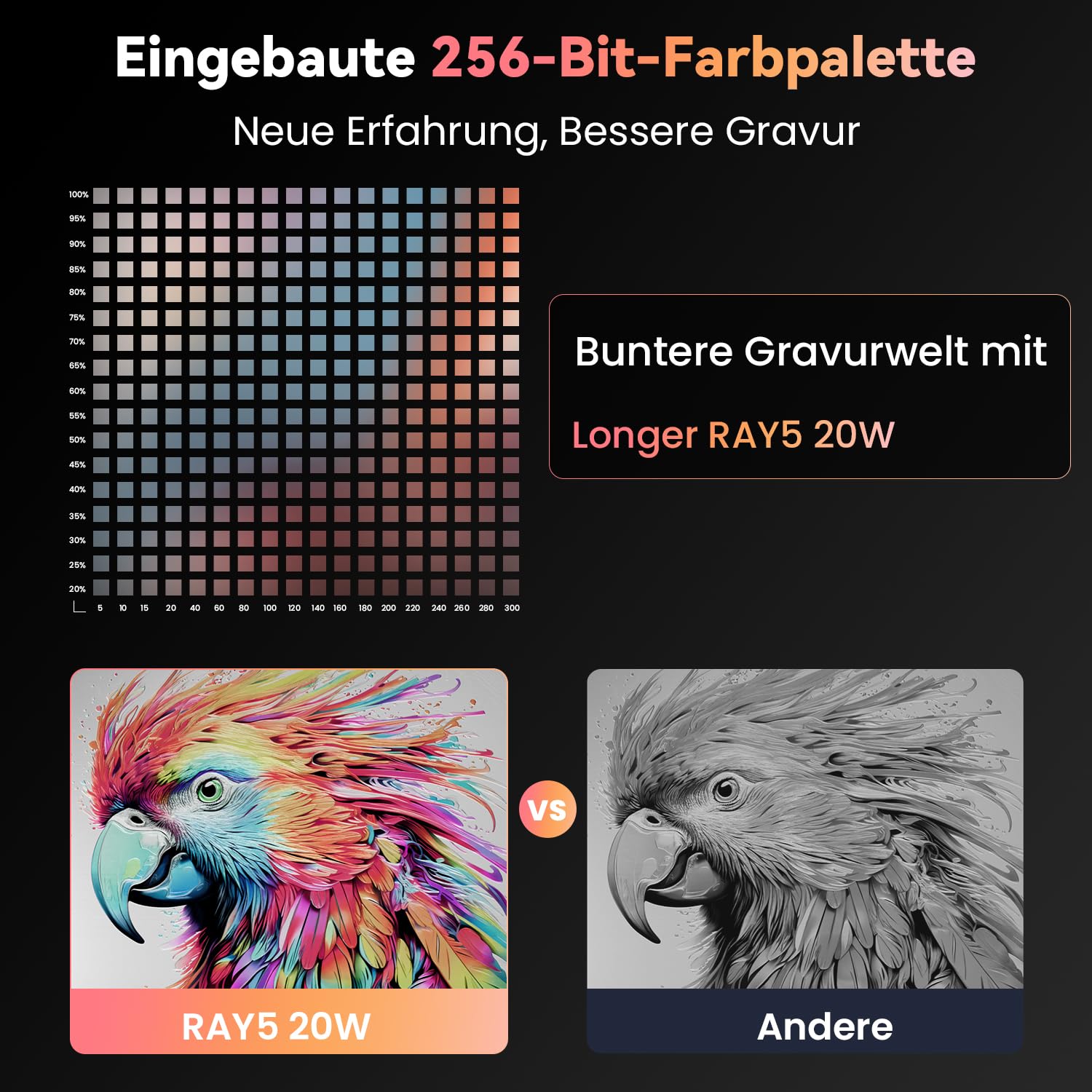Mit seiner Kombination aus Kraft, Präzision und benutzerfreundlichen Funktionen ist der Longer RAY5 20W das ideale Werkzeug, um Ihre kreativen Visionen Wirklichkeit werden zu lassen.