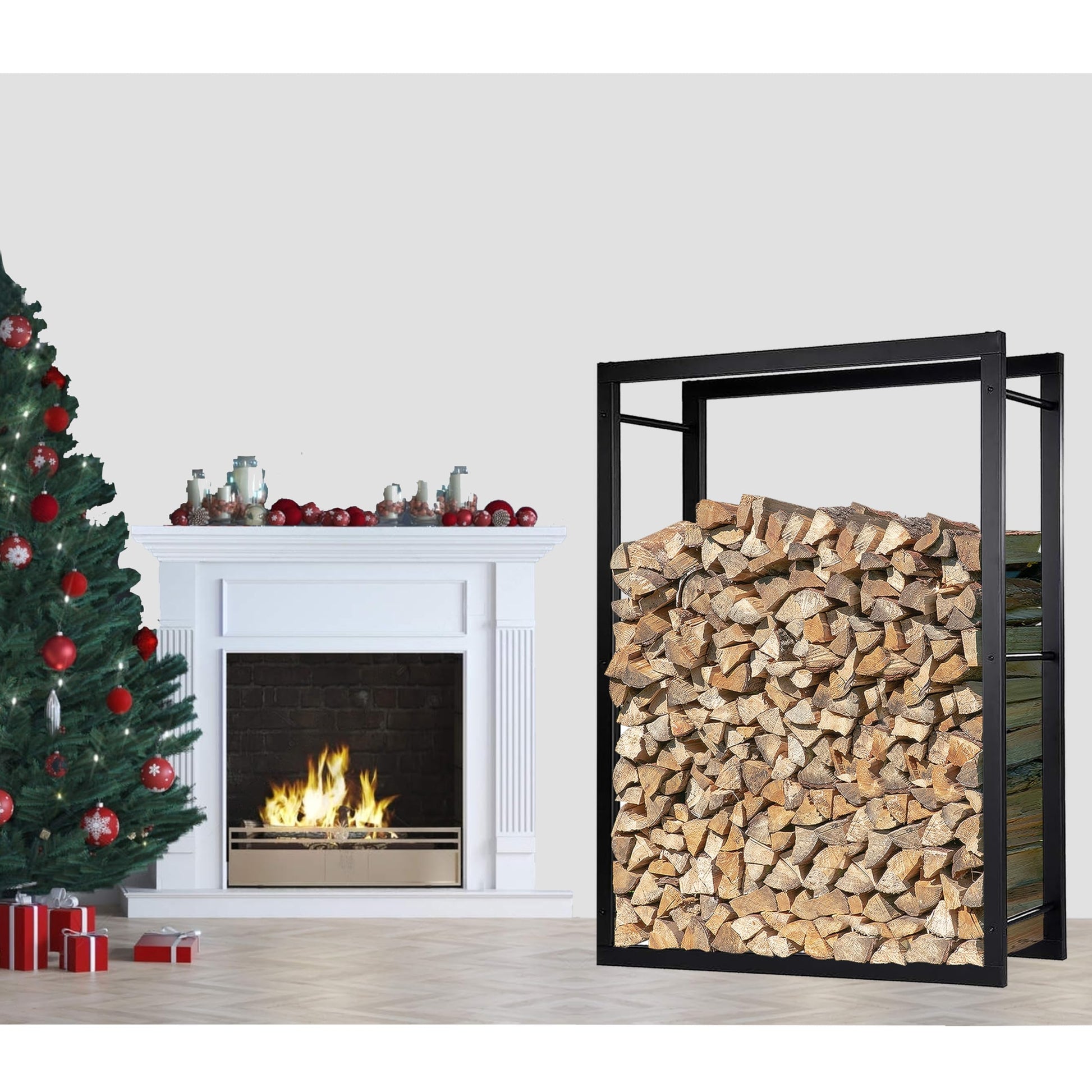 Die Vielseitigkeit dieses Holzhalters ist ein weiterer grosser Pluspunkt. Nutzen Sie ihn als stilvolles Einrichtungselement direkt neben Ihrem Kamin oder Ofen im Wohnbereich. Alternativ kann er auch praktisch in der Garage, im Keller oder in einer geschützten Ecke im Aussenbereich platziert werden, um Ihr Feuerholz trocken und geordnet aufzubewahren.
