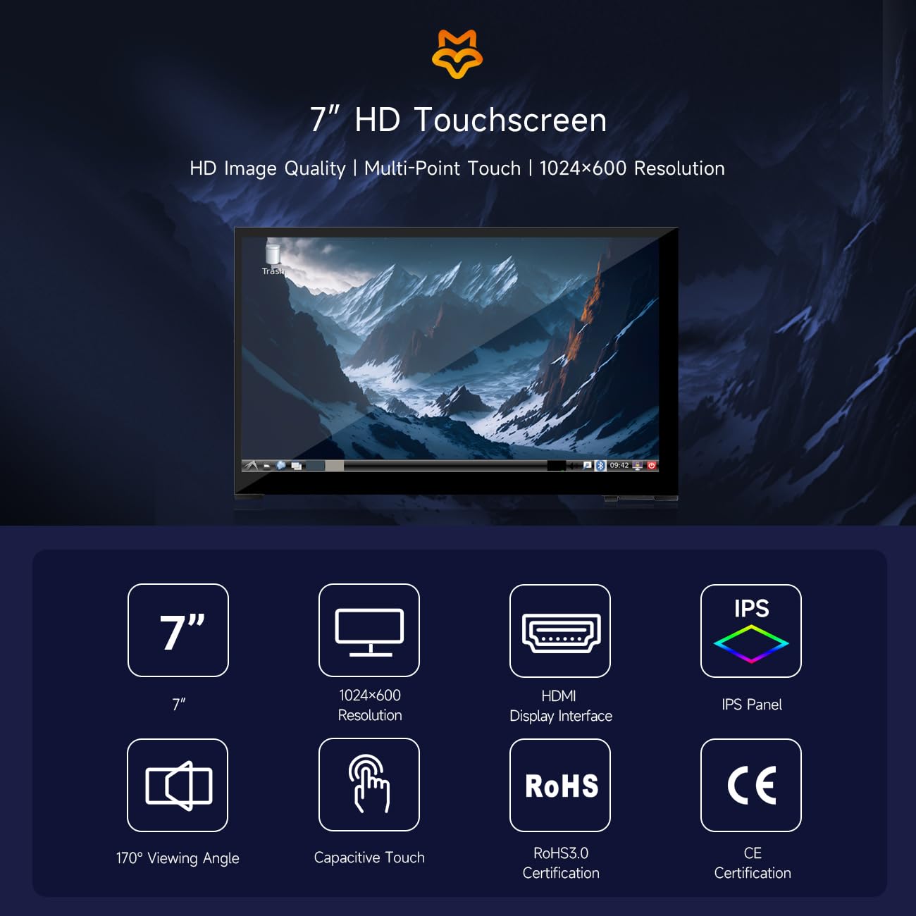LUCKFOX Raspberry Pi 5 Touchscreen Display 7 Zoll 1024x600 IPS
