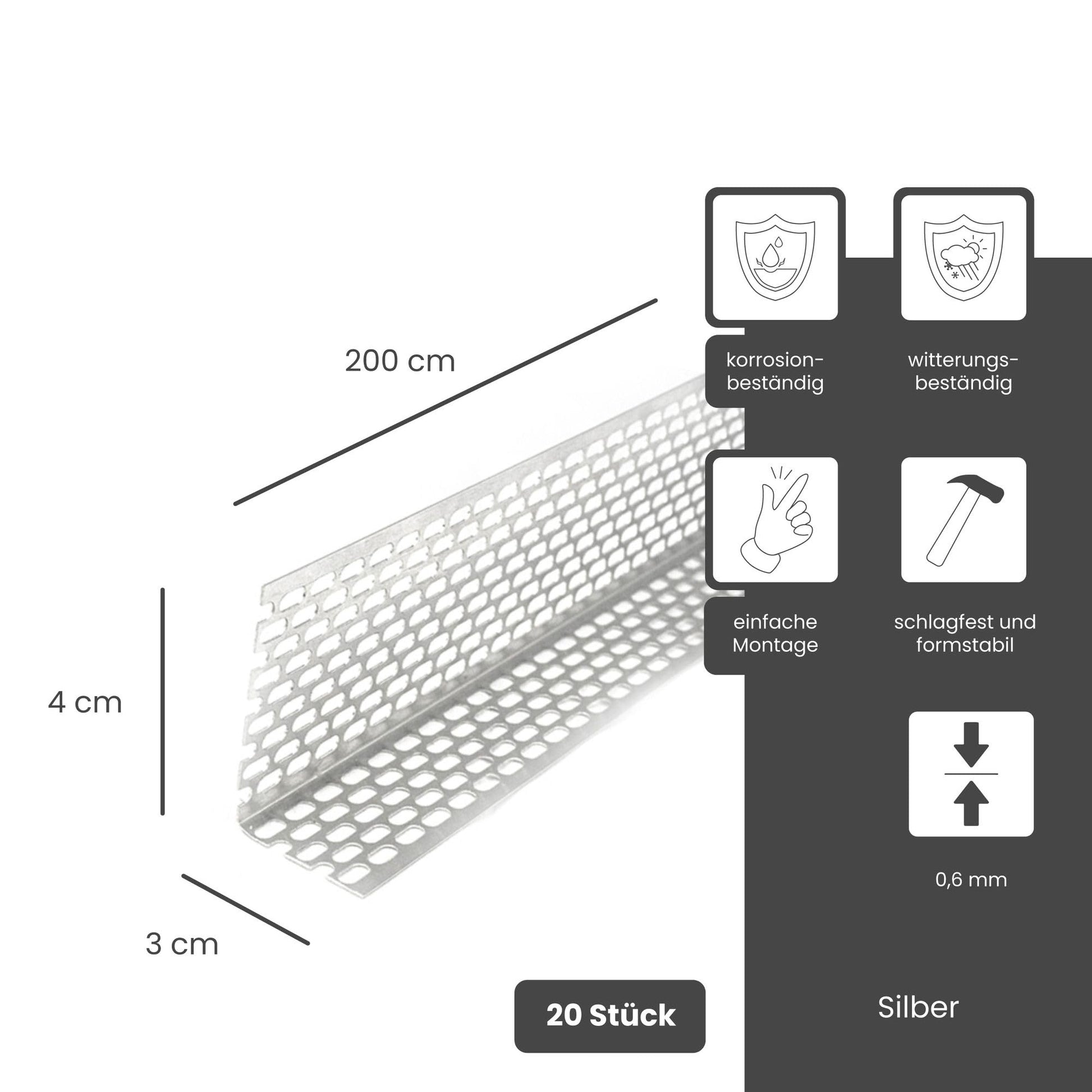- Lieferumfang: 20 Stück Lüftungswinkel in Silber
