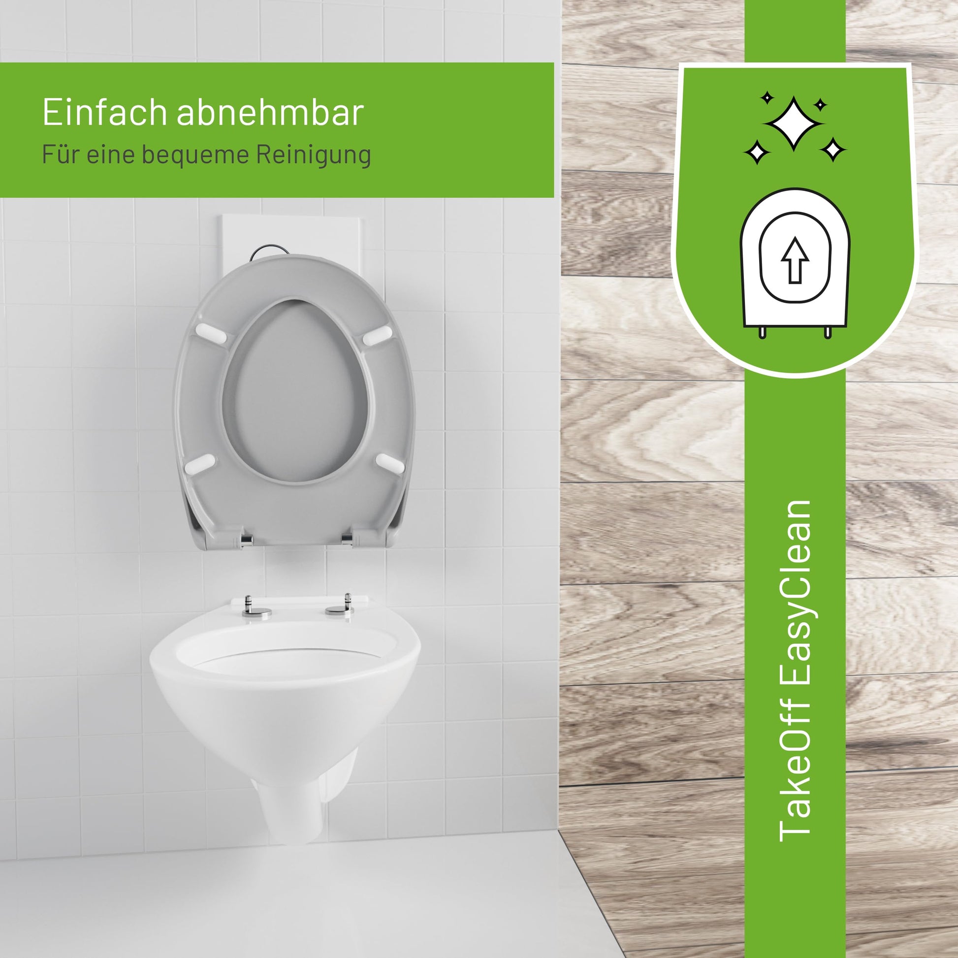 - Abnehmbar für einfache Reinigung: Dank der TakeOff EasyClean Funktion lässt sich der WC-Sitz mit nur einem Handgriff abnehmen – für eine lückenlose und schnelle Hygiene.