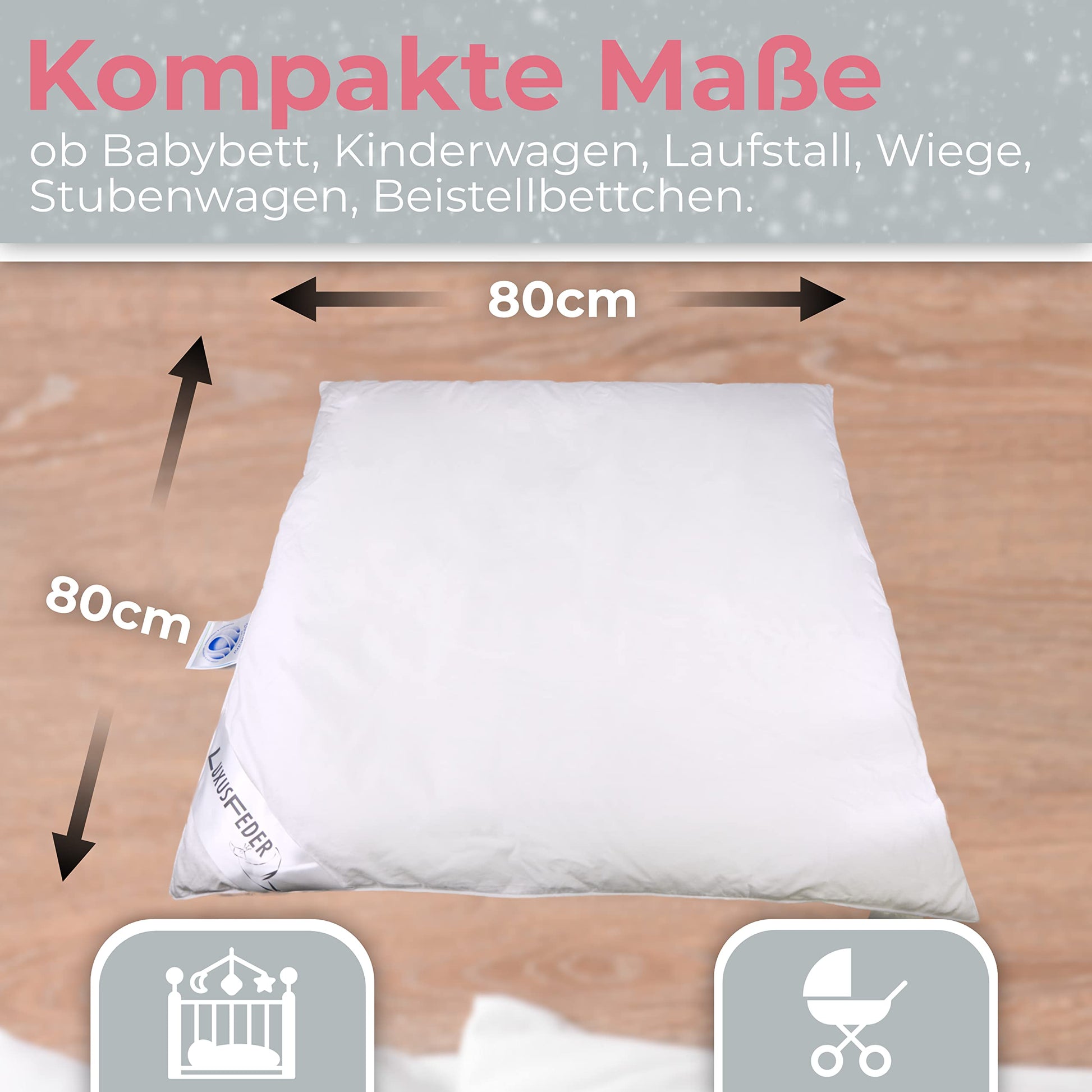 Schenken Sie Ihrem Baby höchsten Komfort mit dieser federleichten Daunendecke. Mit ihren Massen von 80x80 cm ist sie die ideale Begleiterin für den Kinderwagen, den Stubenwagen oder die Wiege und sorgt für wohlige Geborgenheit.