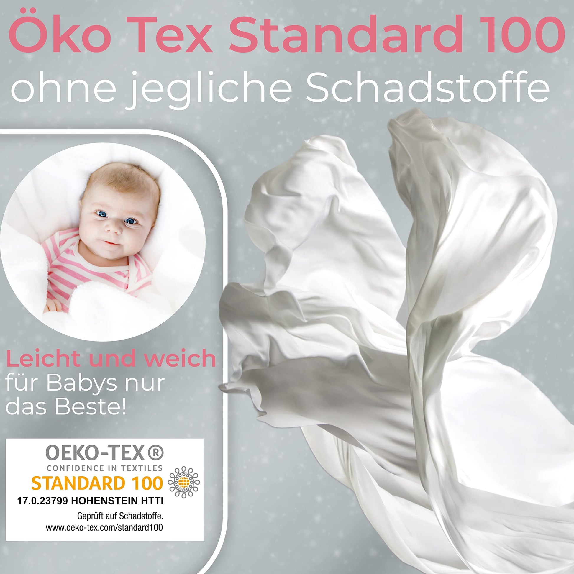 - Zertifizierung: Geprüft und zertifiziert nach Oeko-Tex Standard 100