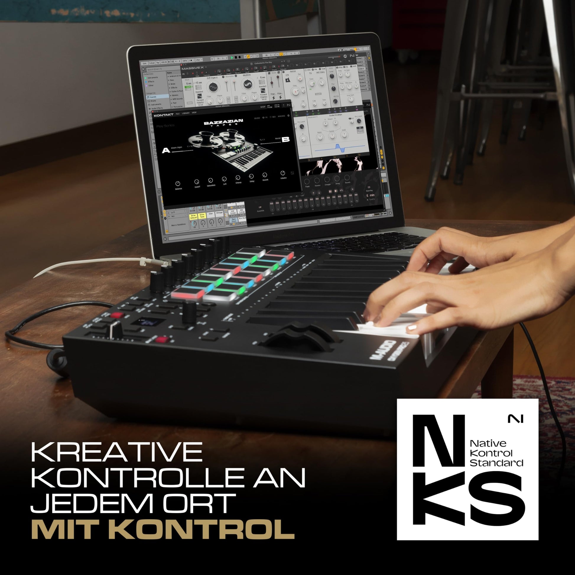 - NKS-Integration: Vollständige Integration mit Native Kontrol Standard (NKS) für eine nahtlose Steuerung von Native Instruments Instrumenten und Soundbibliotheken direkt vom Keyboard aus.