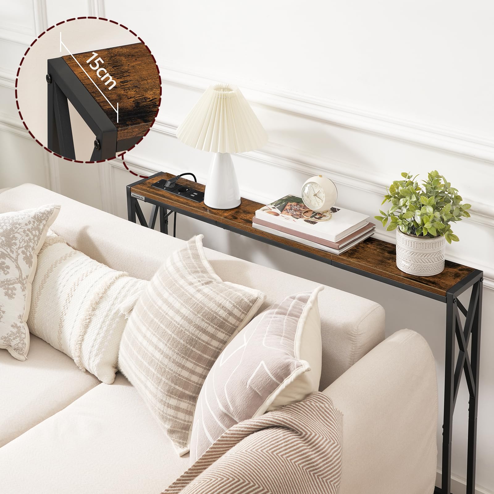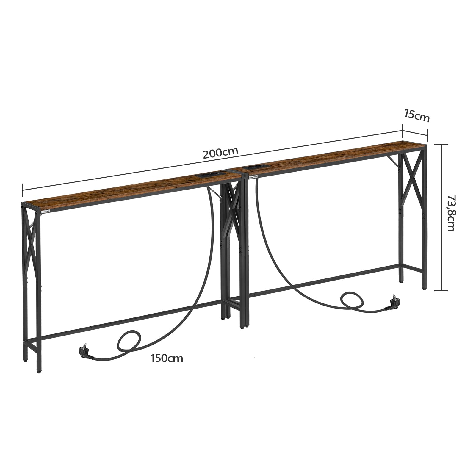 MAHANCRIS Konsolentisch mit Ladestation Vintagebraun/Schwarz