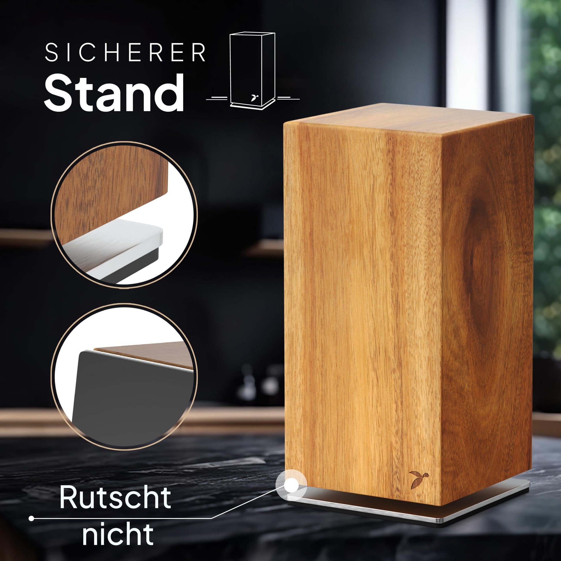 - Hochwertiges Akazienholz: Gefertigt aus extrem robustem und kratzfestem Akazienholz, dessen einzigartige Maserung jeden Block zu einem Unikat macht.