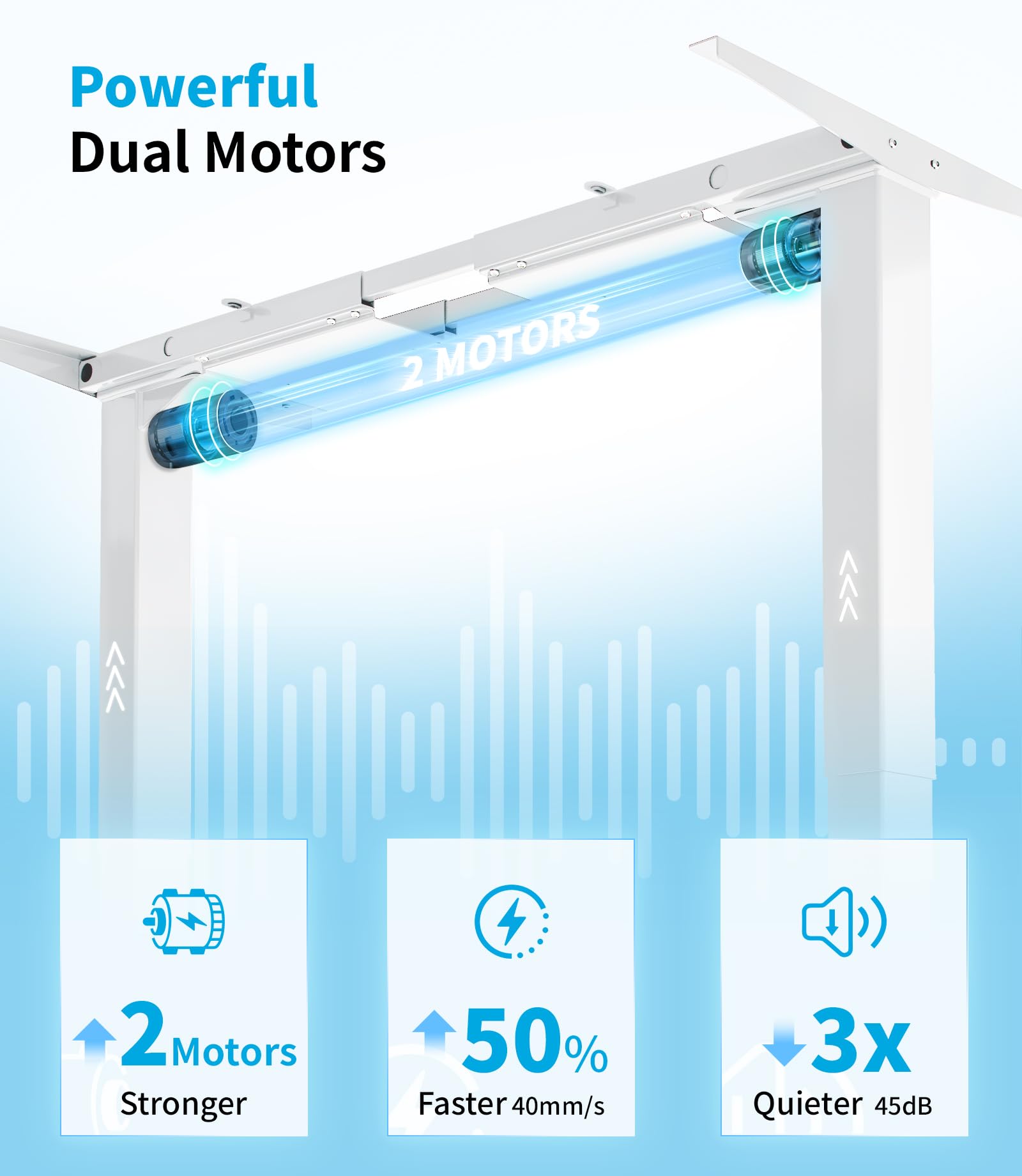 - Leistungsstarker Doppelmotor: Zwei Motoren gewährleisten eine schnelle (38 mm/s), besonders leise (unter 45 dB) und absolut stabile Höhenanpassung.