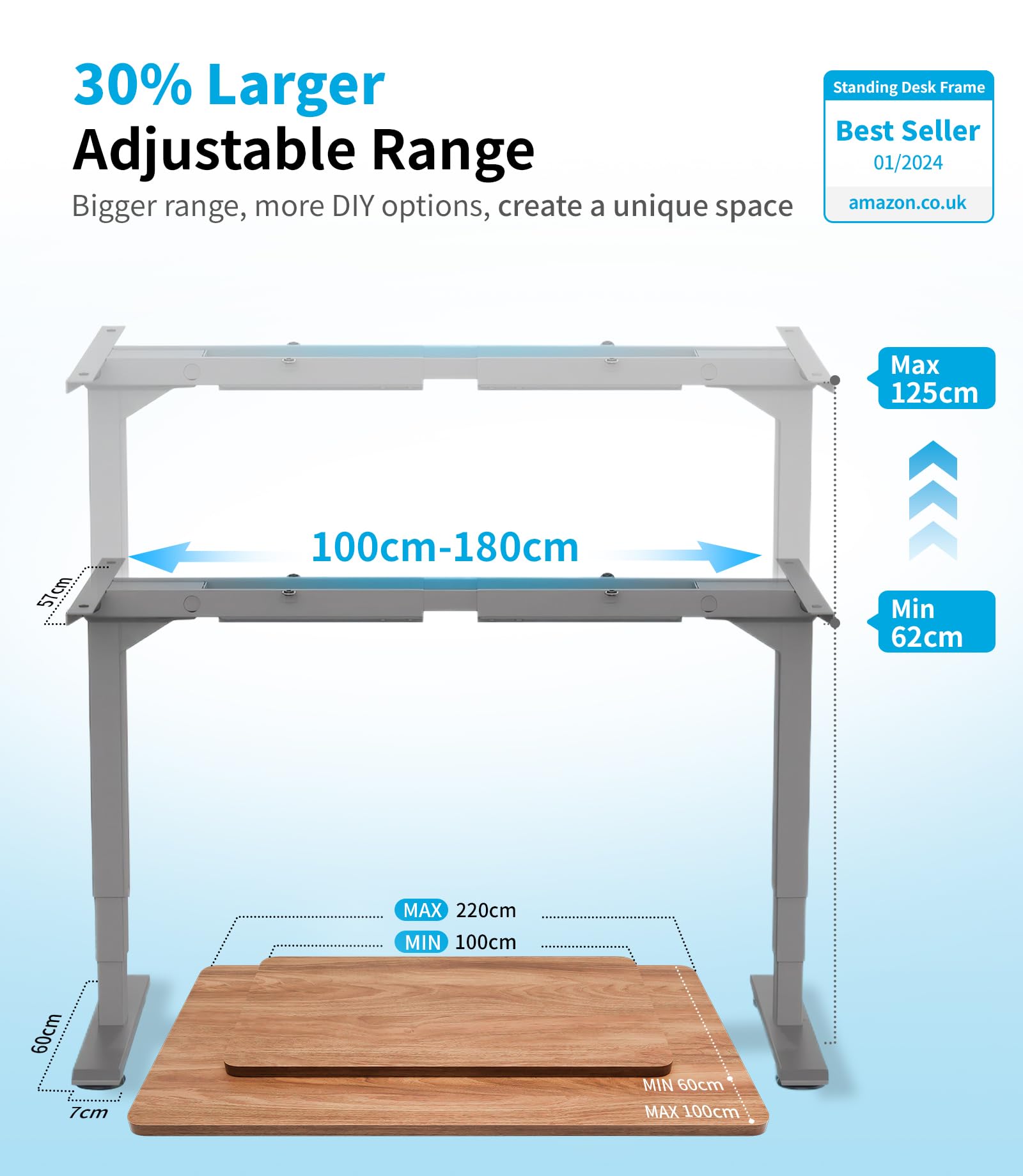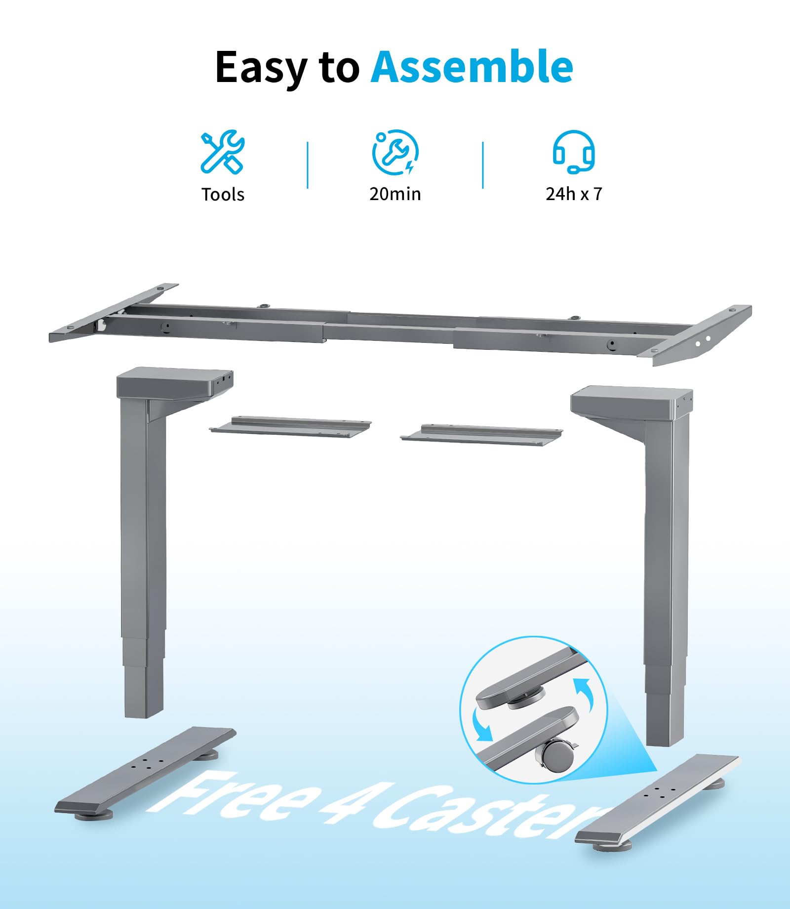 Verwandeln Sie Ihren Arbeitsplatz mit diesem robusten und elektrisch höhenverstellbaren Tischgestell. Es bietet die ideale Basis für einen ergonomischen Schreibtisch, der sich perfekt an Ihre Bedürfnisse und Ihre bevorzugte Tischplatte anpasst.