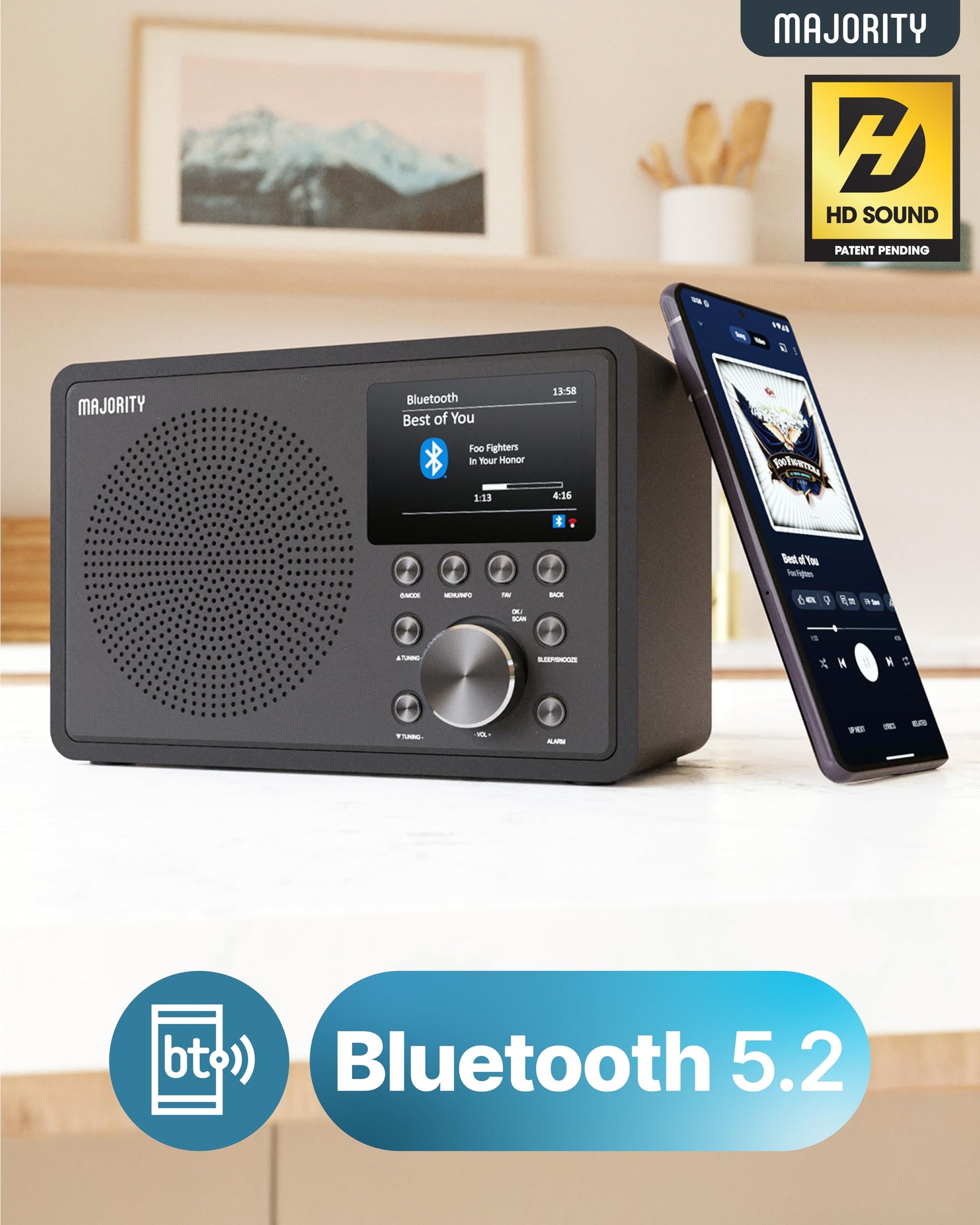 Das Touro Digitalradio von Majority ist ein kompaktes Kraftpaket, das Ihnen die gesamte Welt des Audio-Entertainments direkt nach Hause liefert. Erleben Sie grenzenlose Vielfalt und kristallklaren Klang in einem einzigen, eleganten Gerät.